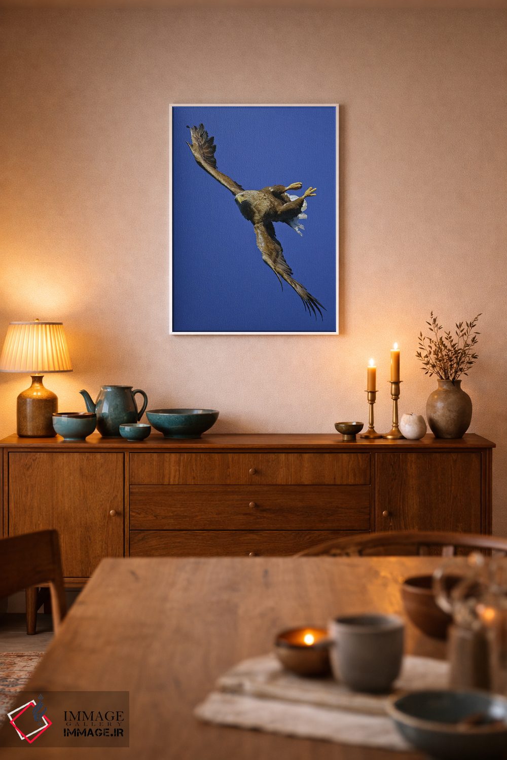 بوم گالری ایماژ نسخهی چیدماناتیوِ گالریپسند از یک اثر هنری است؛ روی کنواس سفیدِ یکدست و بدون اسید با چاپ هنریِ دقیق (Giclée) برای گذارهای نرمتر و وضوح بالاتر با جوهرهای آرشیویِ حرفهای برای لایههای رنگی خواناتر، رنگها روی دیوار متعادلتر و سایهها جزئیتر دیده میشوند. اسمبل تمیز و آمادهی نصب؛ کشیدگی استاندارد روی کلاف و یراق مناسب.