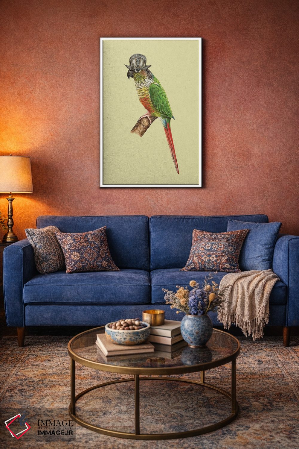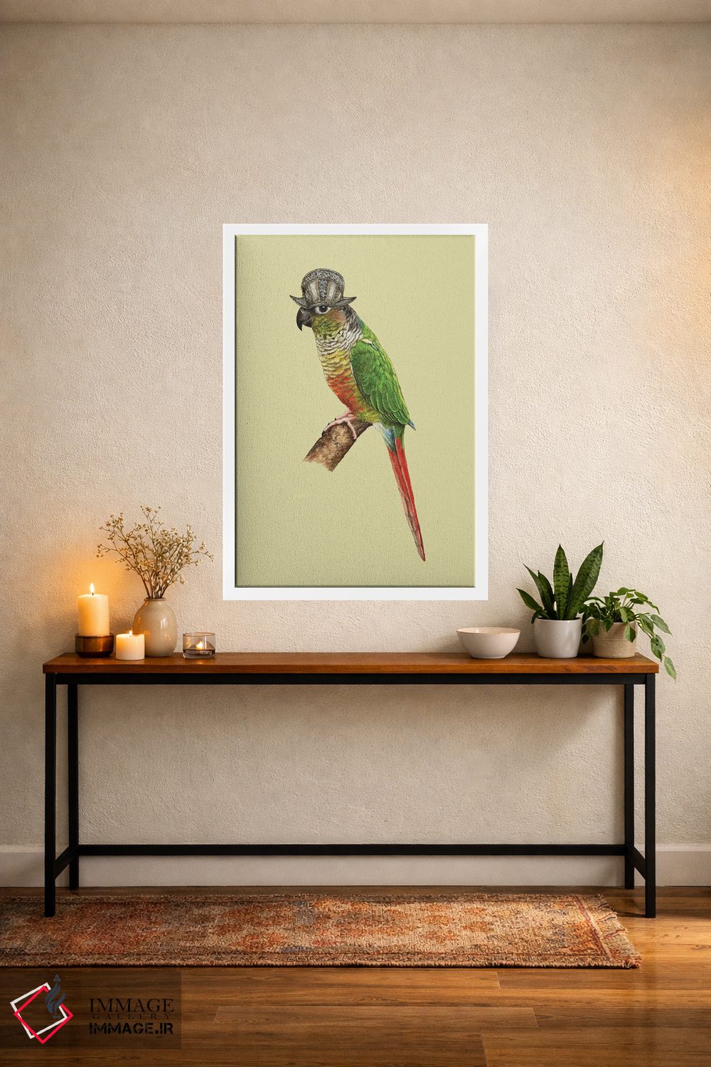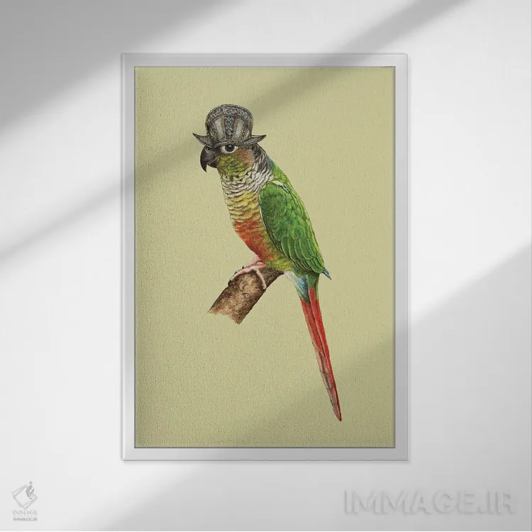 اگر میخواهید دیوار کمی سرزندگیِ محترمانه داشته باشد، «طوطی کوچک سبزرنگ گونهدار» اثرِ «میخائیل ودرنیکوف» حس طبیعت را بیدغدغه وارد خانه میکند، برای فضاهای روستیک یا بوهو گزینهٔ مناسبیست. اگر دنبال اثر دوستداشتنیِ «بیغلو» هستید، این یکی دقیق مینشیند.