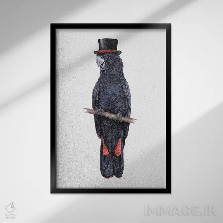 تابلو دکوراتیو کاکاتو سیاه دم قرمز اثر میخائیل ودرنیکوف