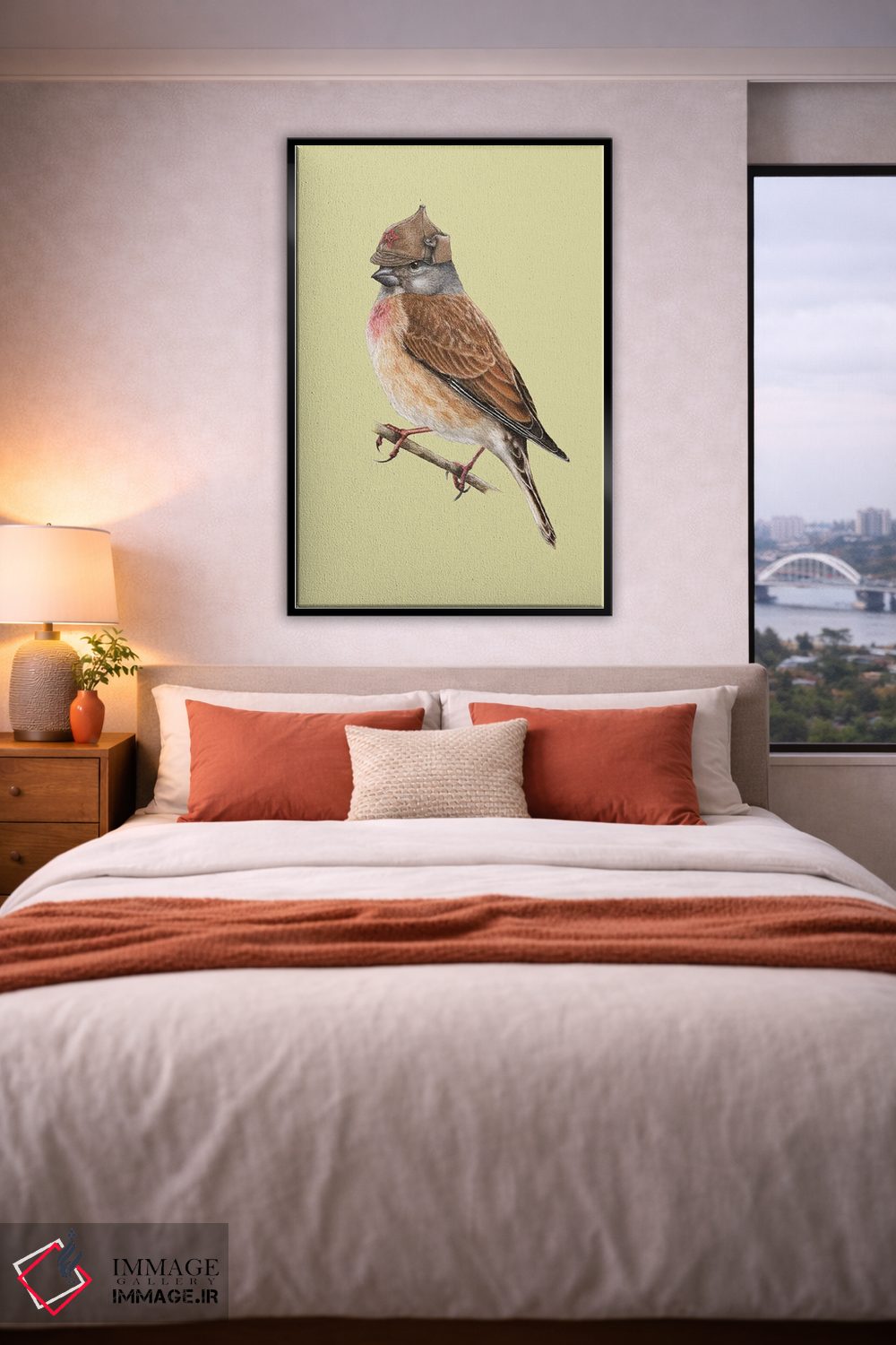 در یک جمله: اگر میپسندید که اثر در فضا «گرم و صمیمی» دیده شود، نور موضعی ملایم نتیجه را بهتر نشان میدهد و جلوهی گالریوار بیشتری میدهد. برای راهنمایی دربارهی قاب، اندازه یا سفارشهای ویژه، تیم ایماژ کنار شماست تا نتیجه حرفهایتر دیده شود.