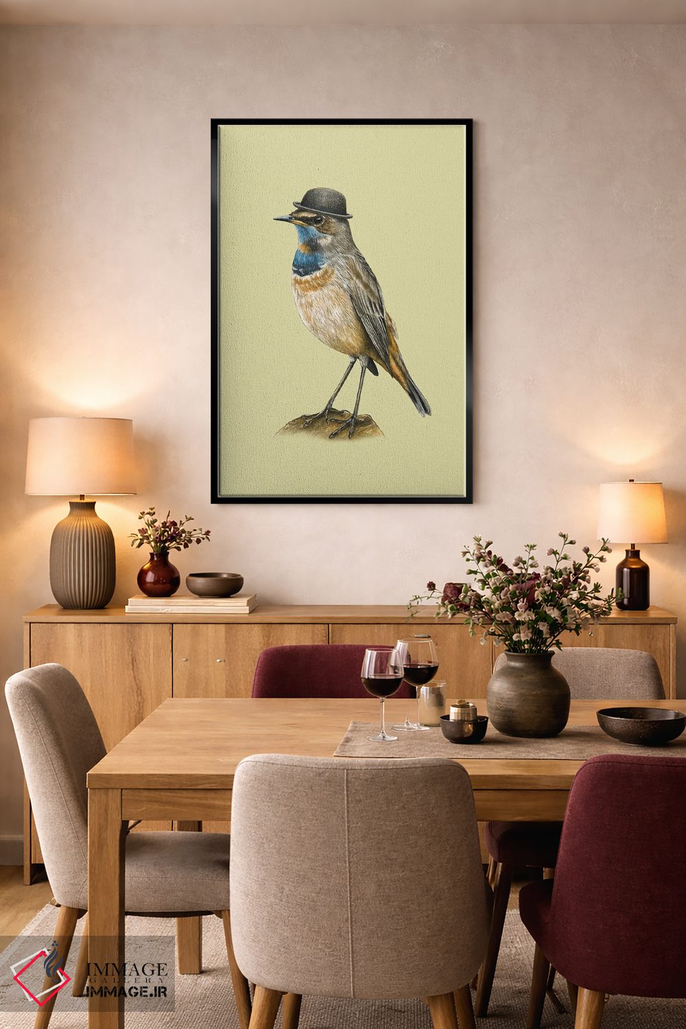 تابلو دکوراتیو گلوآبی اثر میخائیل ودرنیکوف - نمای روبه‌رو روی دیوار