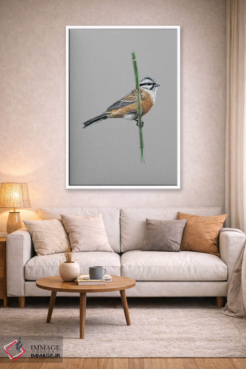 «چکاوک سنگی» اثرِ «میخائیل ودرنیکوف» از آن کارهاییست که گرما و شخصیت به فضا اضافه میکند؛ برای راهروها و ورودیهای گرم انتخاب خوبیست. با قاب چوبی یا مشکی، حس مرتبتری پیدا میکند.