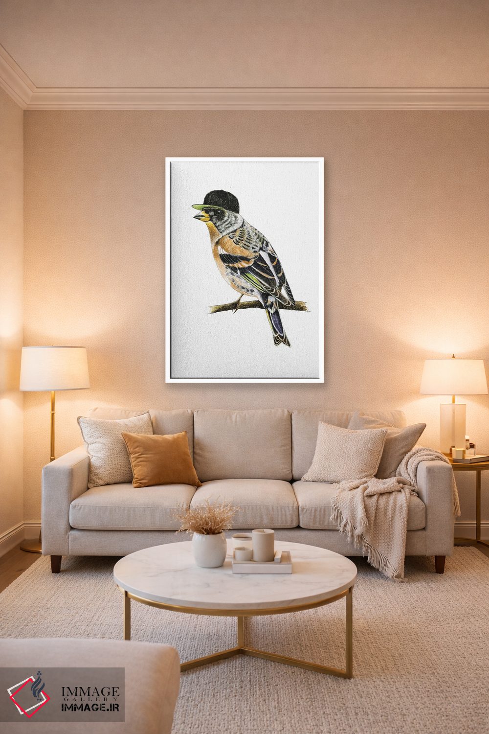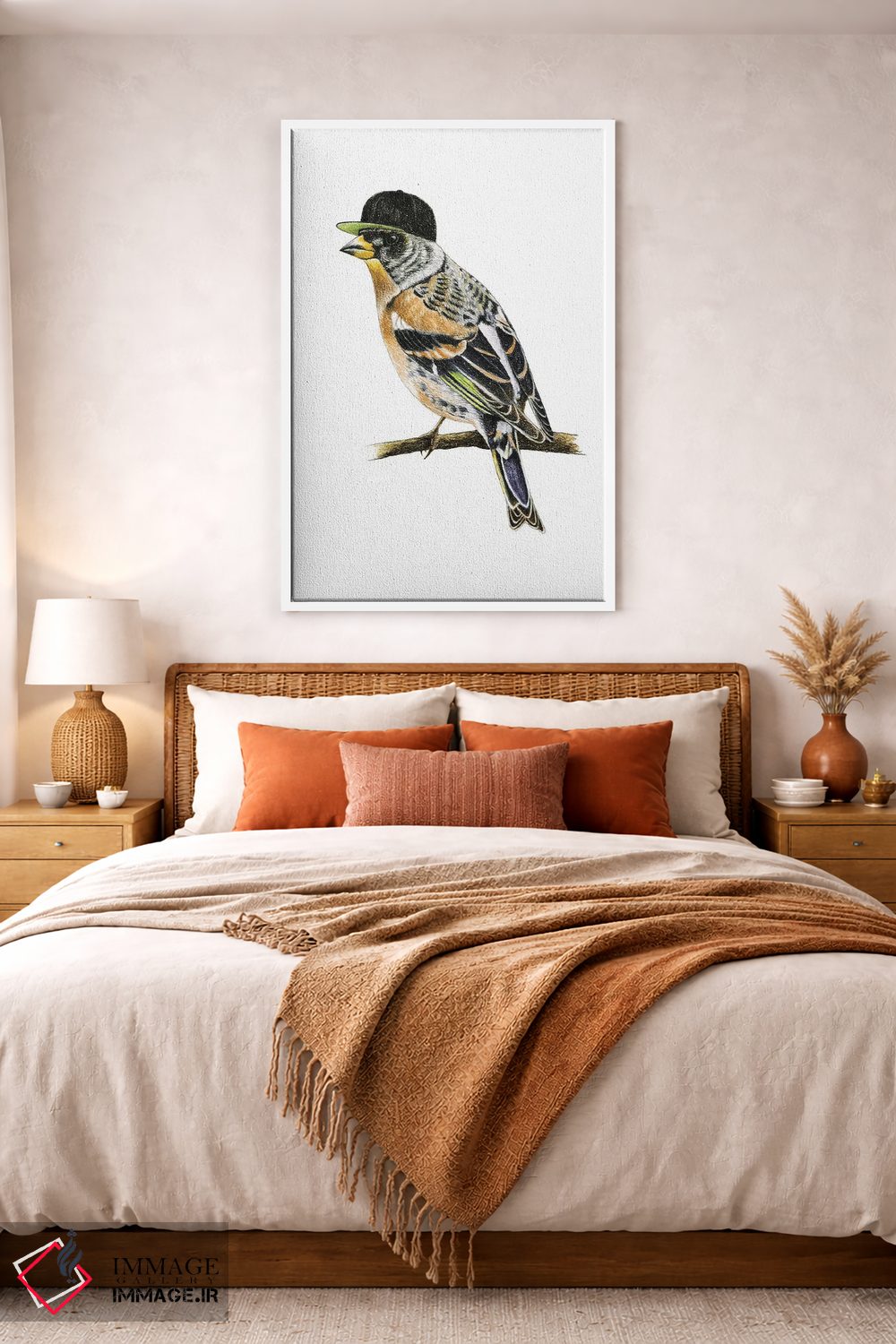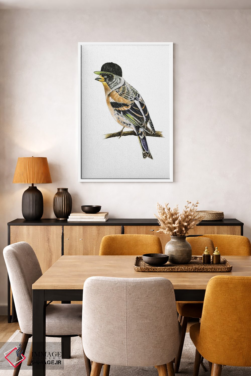 اگر به آثار حیوانات علاقه دارید، «سهره دمقرمز» اثرِ «میخائیل ودرنیکوف» گرما و شخصیت به فضا اضافه میکند، برای دکورهایی با رنگهای خنثی گزینهٔ مناسبیست. با نورپردازی نقطهای، جذابتر هم میشود.