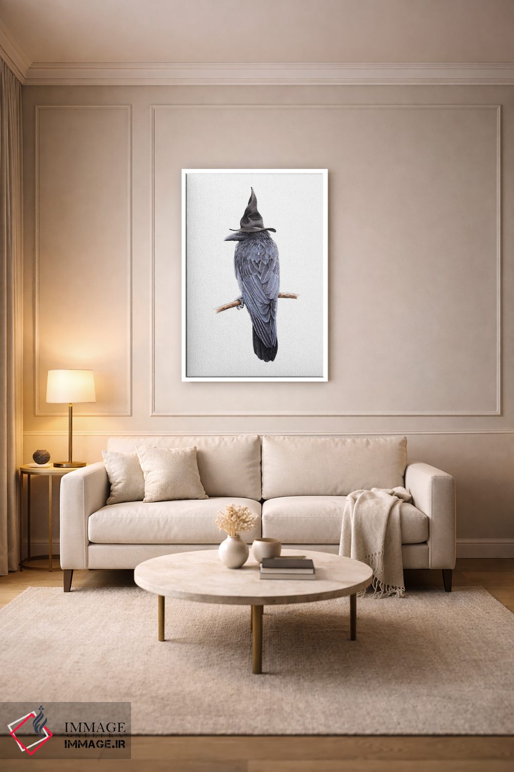 این اثر با عنوان «کلاغ نوکدرشت» اثرِ «میخائیل ودرنیکوف» در کنار رنگهای خنثی، تضاد دلچسبی میسازد؛ برای خانههایی با چوب و پارچههای گرم انتخابی خوشسلیقه است. به دیوار، قصه میدهد—اما قصهای آرام و شیک.