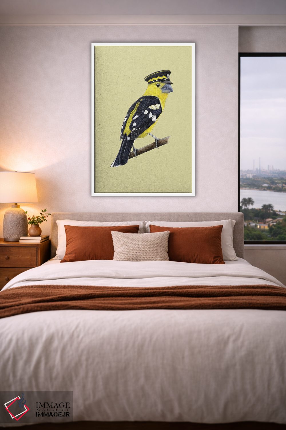 برای دیواری که میخواهید سلیقهتان را آرام و دقیق نشان بدهد، «"دارکوب طلایی"» اثرِ «میخائیل ودرنیکوف» تضادهای رنگی را خوشقوارهتر میکند؛ برای اتاق خوابهای آرام و روشن پیشنهاد میشود. این تابلو میتواند شروعِ خوبی برای یک دیوار گالری باشد.
