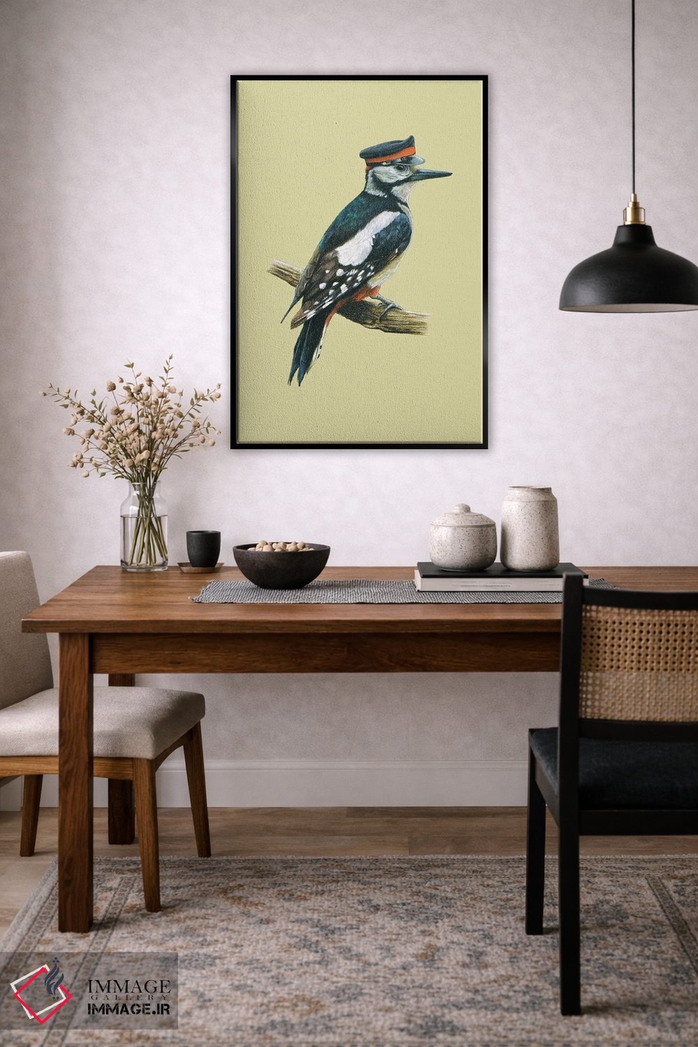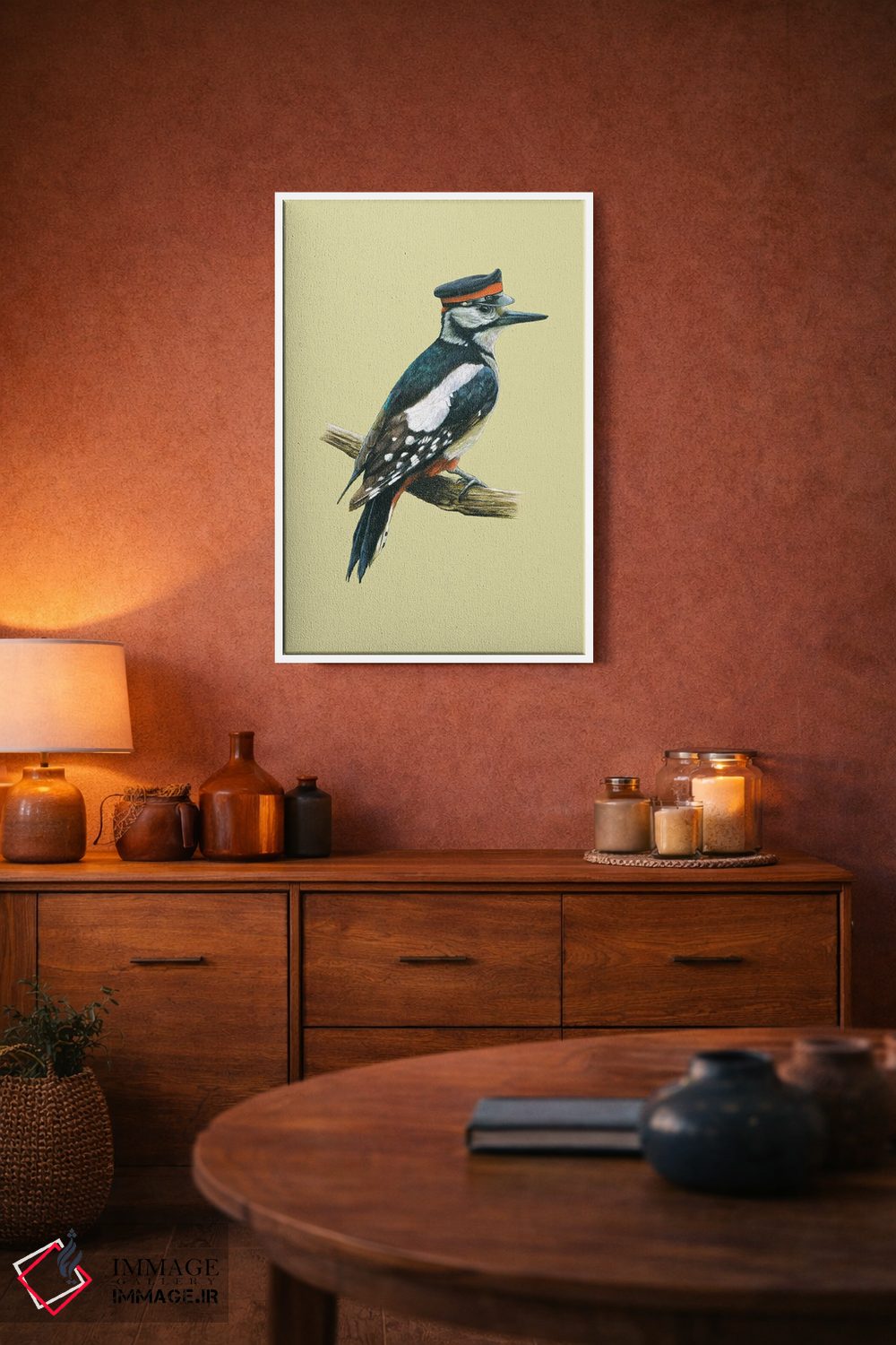 اگر به آثار حیوانات علاقه دارید، «"دارکوب خالدار بزرگ"» اثرِ «میخائیل ودرنیکوف» بافت و جزئیات را طوری نشان میدهد که نگاه میماند، برای کافههای کوچک و صمیمی گزینهٔ مناسبیست. حسش صمیمی است، اما کیفیتش جدی و خوشپرداخت.