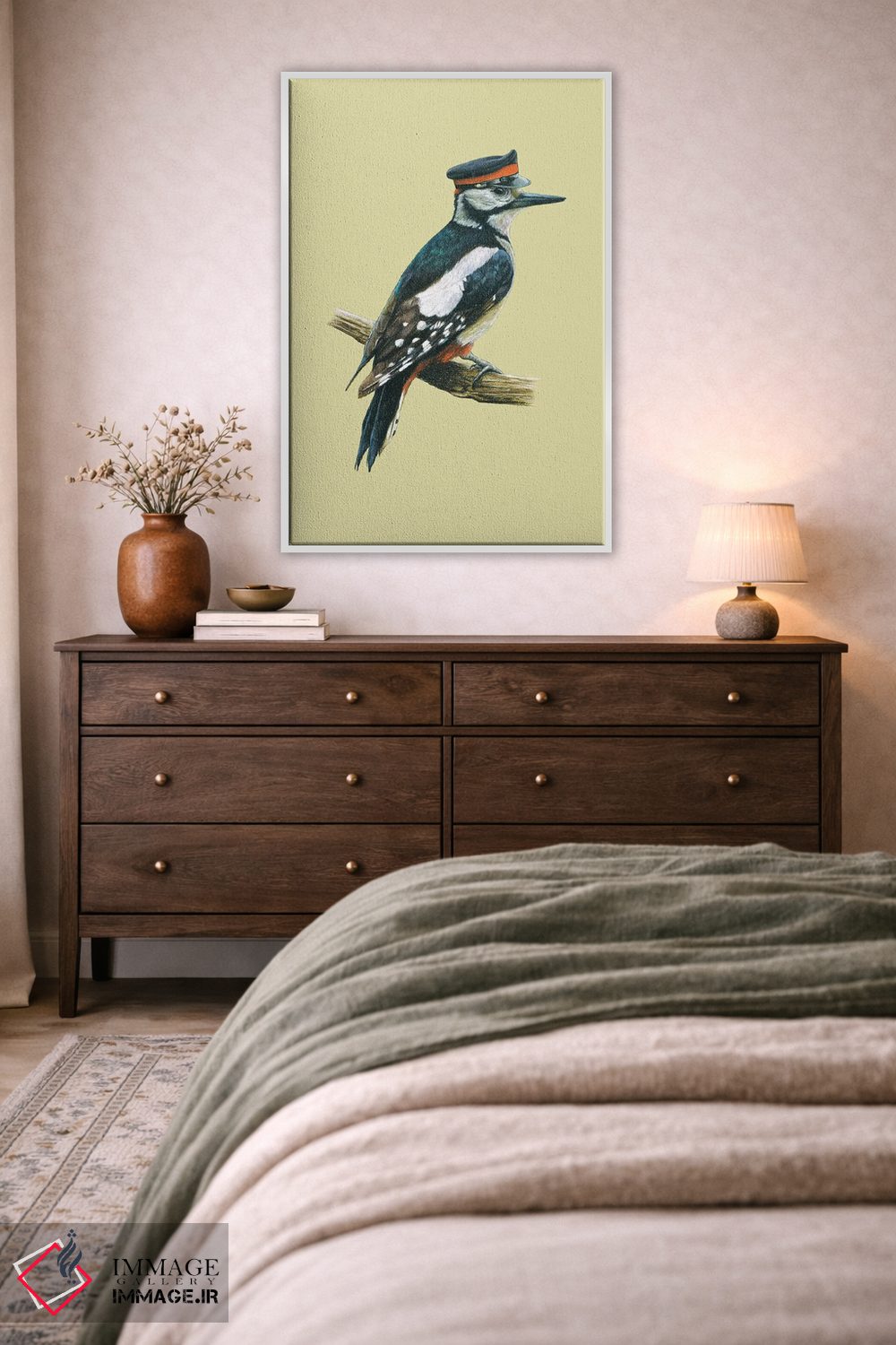 بوم گالری ایماژ نسخهی چیدماناتیوِ سطحبالا از یک اثر هنری است؛ روی کنواس سفیدِ یکدست و بدون اسید با چاپ هنری به استاندارد جیکلی (Giclée) با رنگدانههای آرشیوی و سیستم رنگ دقیق؛ حس نهایی نزدیکتر به ارائهی گالریوار است؛ نه صرفاً یک تصویر. سفارشیسازی و آمادهسازی تمیز باعث میشود اثر روی دیوار مرتب و حرفهای بنشیند.