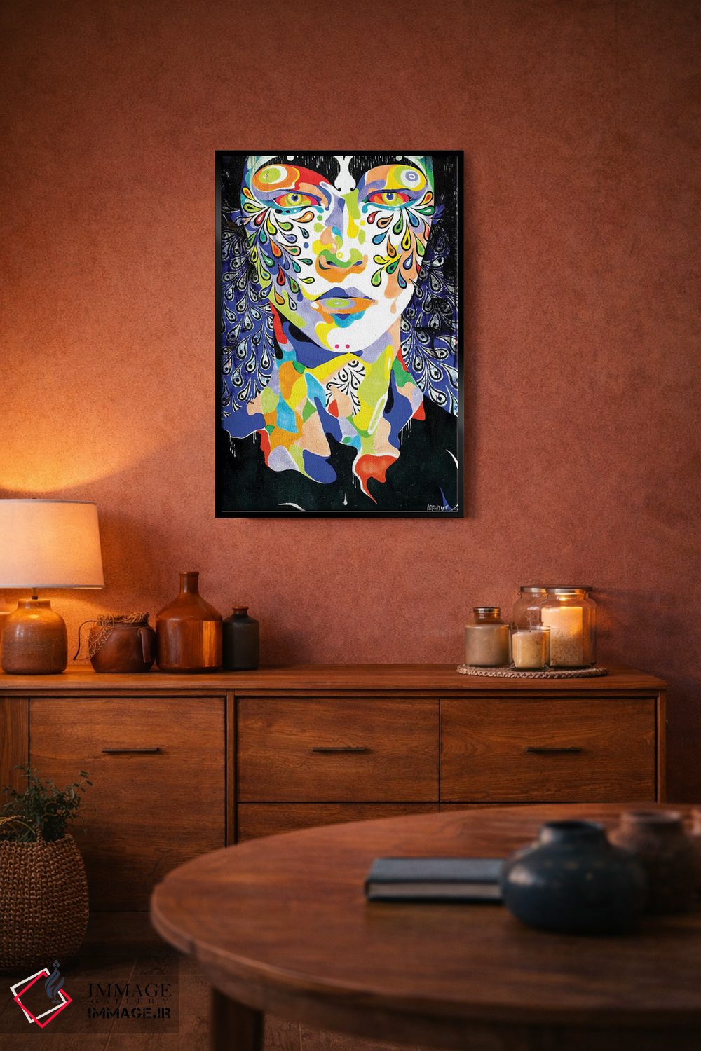 براساس پالت ترکیبی اثر، قاب تیک گرم (چوبی) پیشنهاد اول است و مشکی مات (فریم متوسط) مکمل. برای سفارشهای پروژهای با ابعاد و قابهای اختصاصی با ایماژ در تماس باشید.