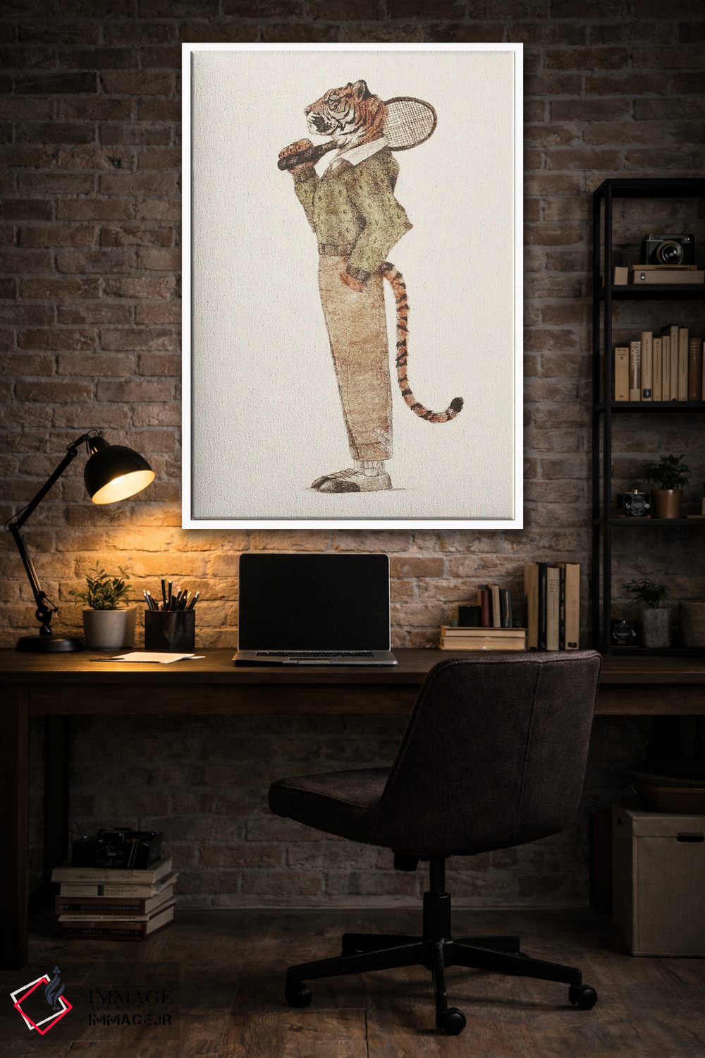 اگر دنبال یک تابلو حیواناتِ «با کلاس» هستید، «باشگاه تنیس ببر» اثرِ «مایک کوبو» تعادل خوبی بین جذابیت و سلیقه ایجاد میکند.