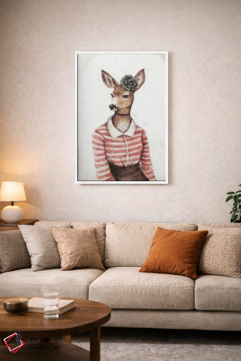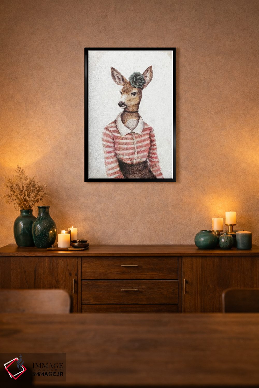 براساس پالت گرم اثر، قاب تیک گرم (چوبی) پیشنهاد اول است و مشکی مات (فریم متوسط) مکمل. برای سفارشهای پروژهای با ابعاد و قابهای اختصاصی با ایماژ در تماس باشید.