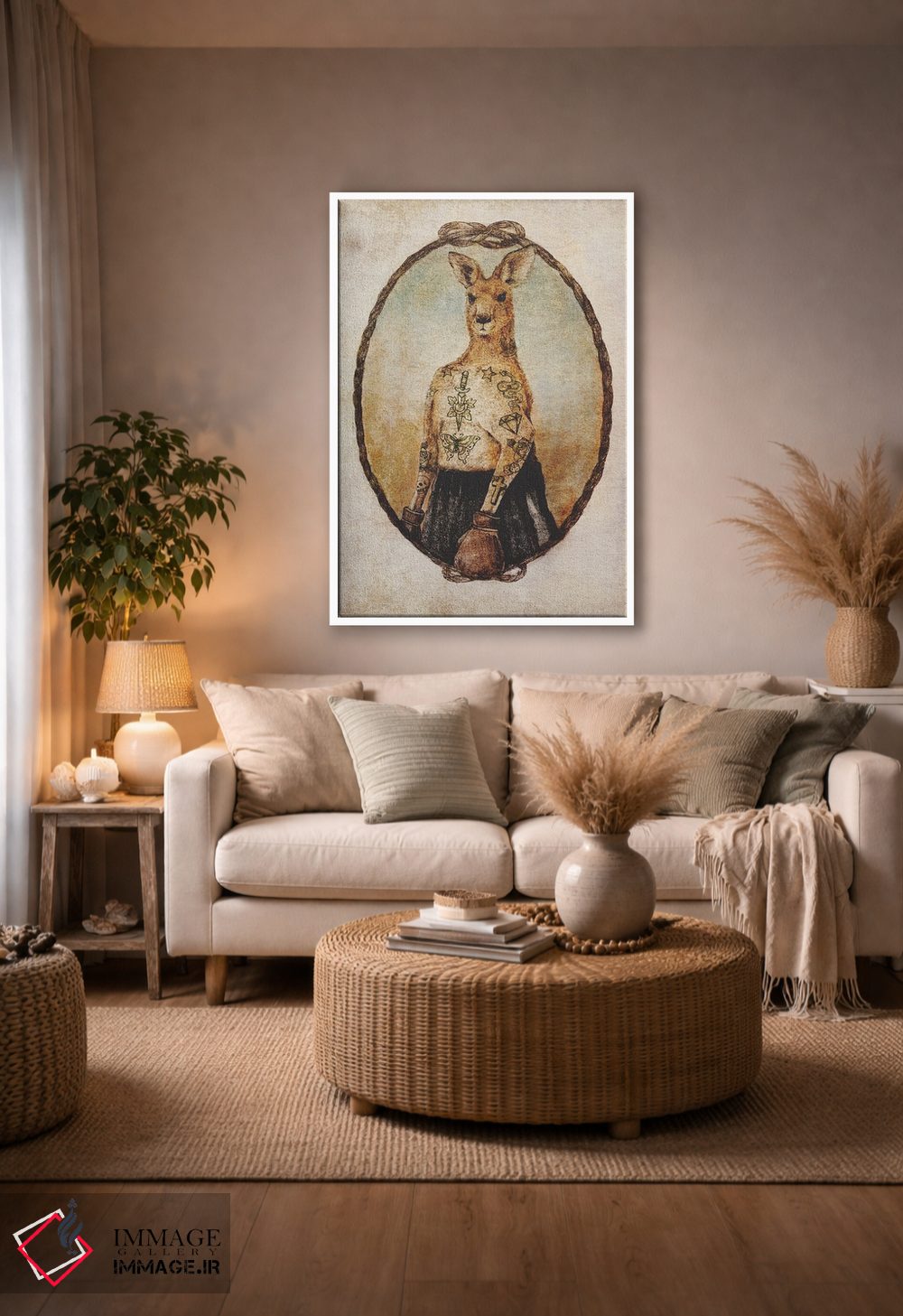 براساس پالت گرم اثر، قاب بلوط روشن (چوبی) پیشنهاد اول است و استخوانی ملایم مکمل. برای سفارشهای پروژهای با ابعاد و قابهای اختصاصی با ایماژ در تماس باشید.