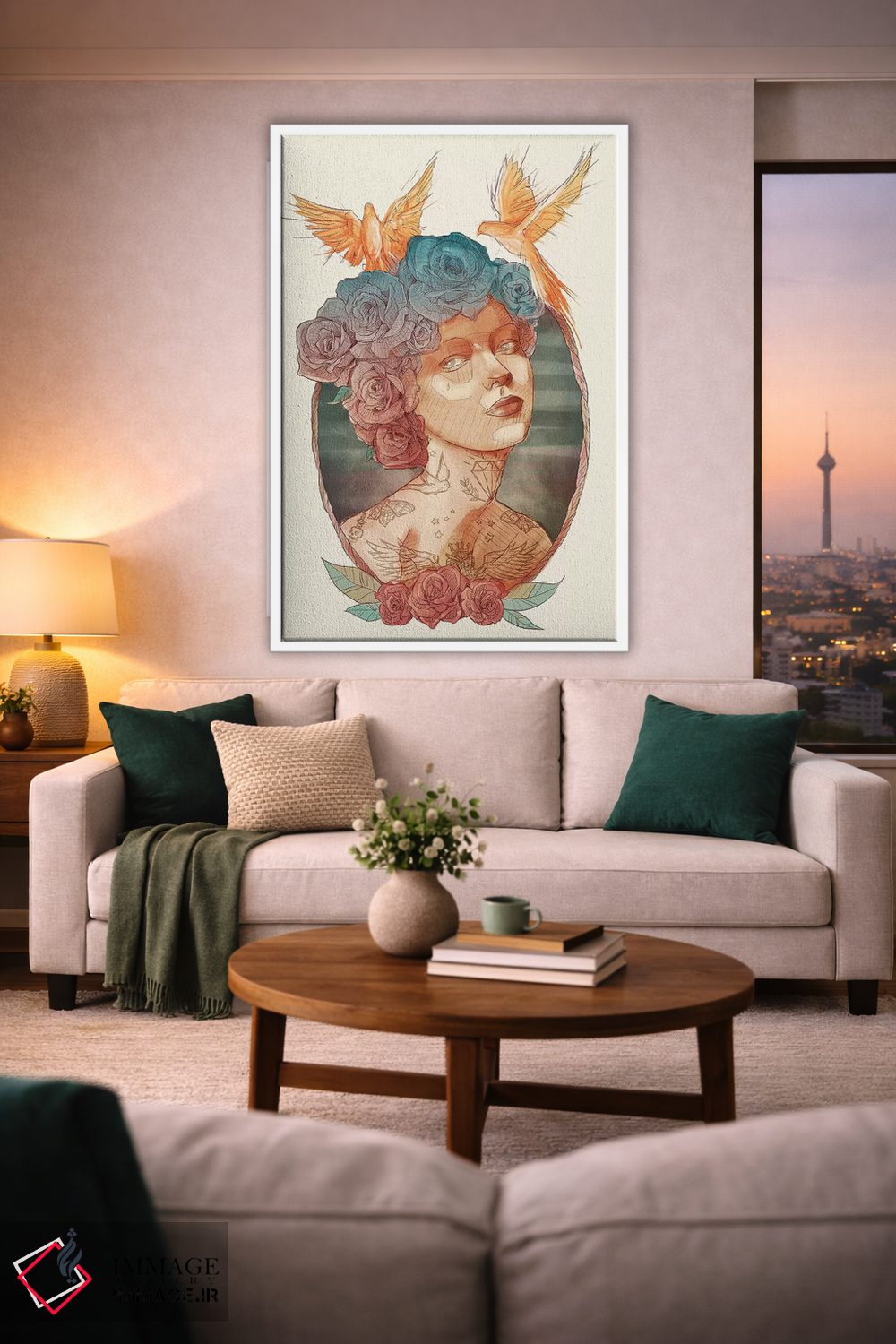 ساختار بوم گالری ایماژ طوری است که اثر روی دیوار «پرداختشده» و حرفهای دیده شود—نه پرزرقوبرقِ بیپایه؛ بلکه دقیق و خوشپرداخت. بافت ظریف کنواس کمک میکند حس اثر هنری را در نگاه نزدیک نگه میدارد و نتیجه را یکدستتر میکند. در کنترل تونها، تعادل بهتری بین نور و رنگ ایجاد میکند و در چیدمانهای مدرن و کمینهگرا خیلی خوب مینشیند. حاصل کار، یک تابلو خوشنشین است که هم از دور اثرگذار است و هم از نزدیک خوشخوان.