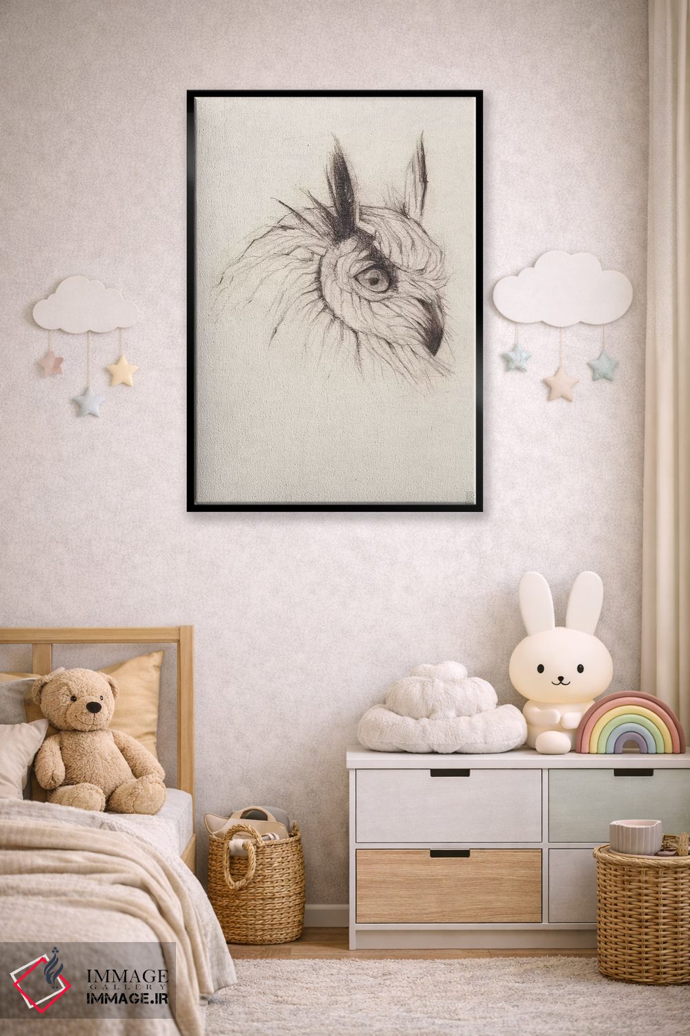 برای دکورهای صمیمی، «"جغد ۲"» اثرِ «مایک کوبو» در کنار رنگهای خنثی، تضاد دلچسبی میسازد؛ برای فضاهای روستیک یا بوهو انتخابی خوشسلیقه است. به دیوار، قصه میدهد—اما قصهای آرام و شیک.