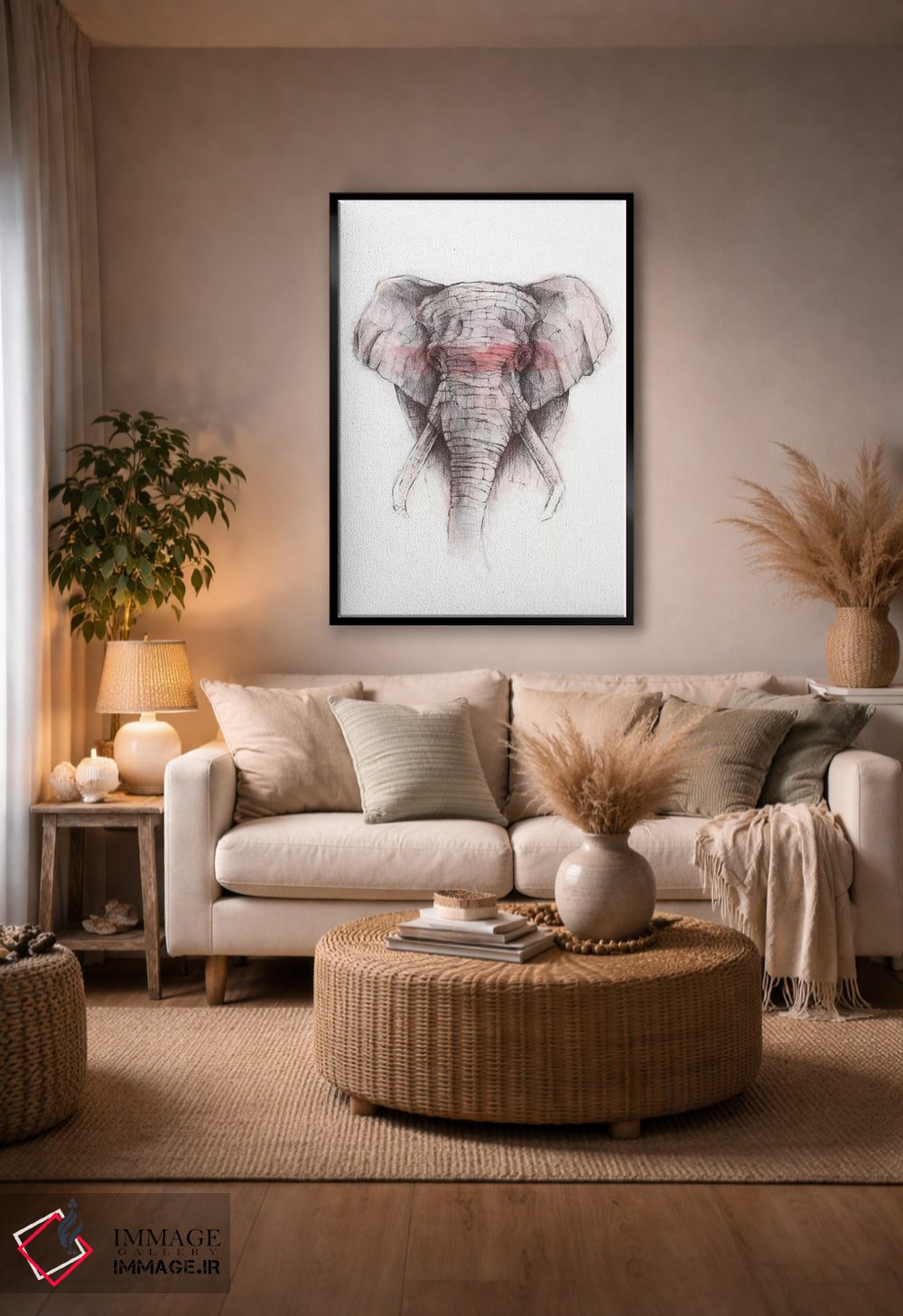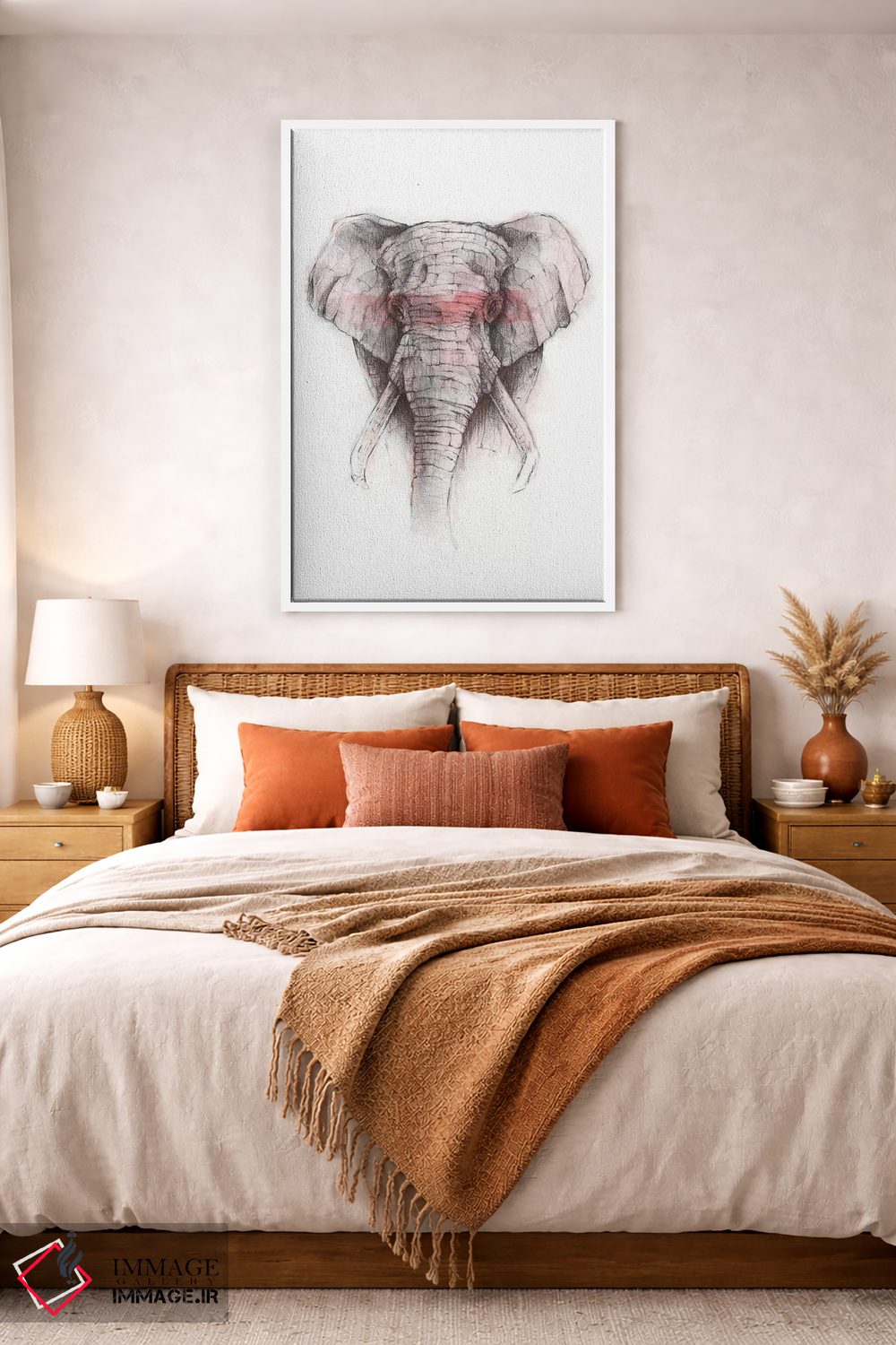 براساس پالت گرم اثر، قاب تیک گرم (چوبی) پیشنهاد اول است و مشکی مات (فریم متوسط) مکمل. برای سفارشهای پروژهای با ابعاد و قابهای اختصاصی با ایماژ در تماس باشید.