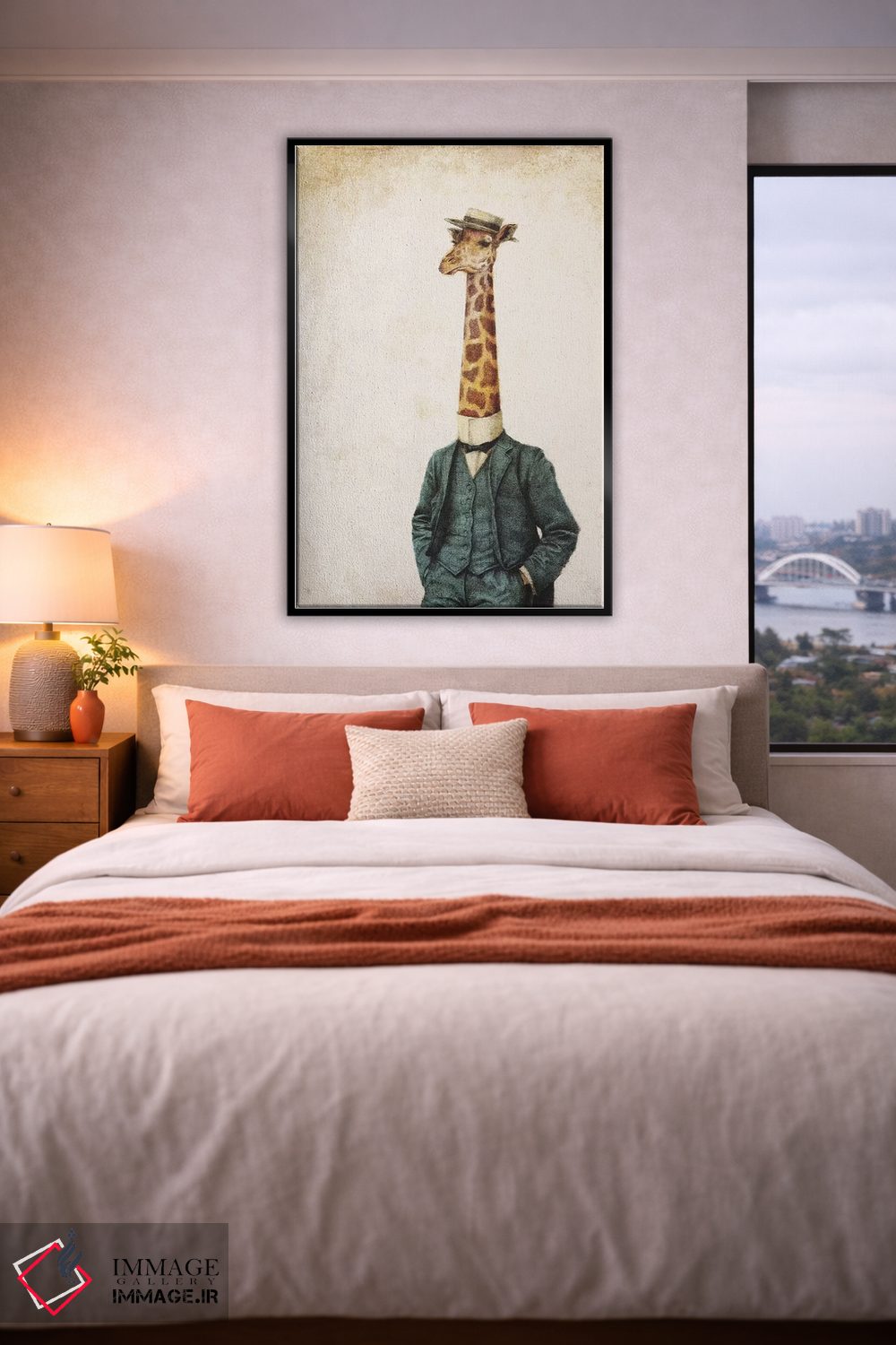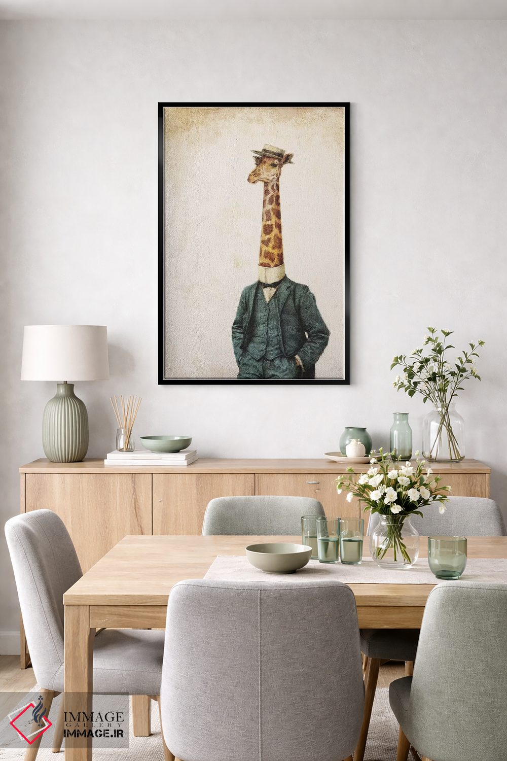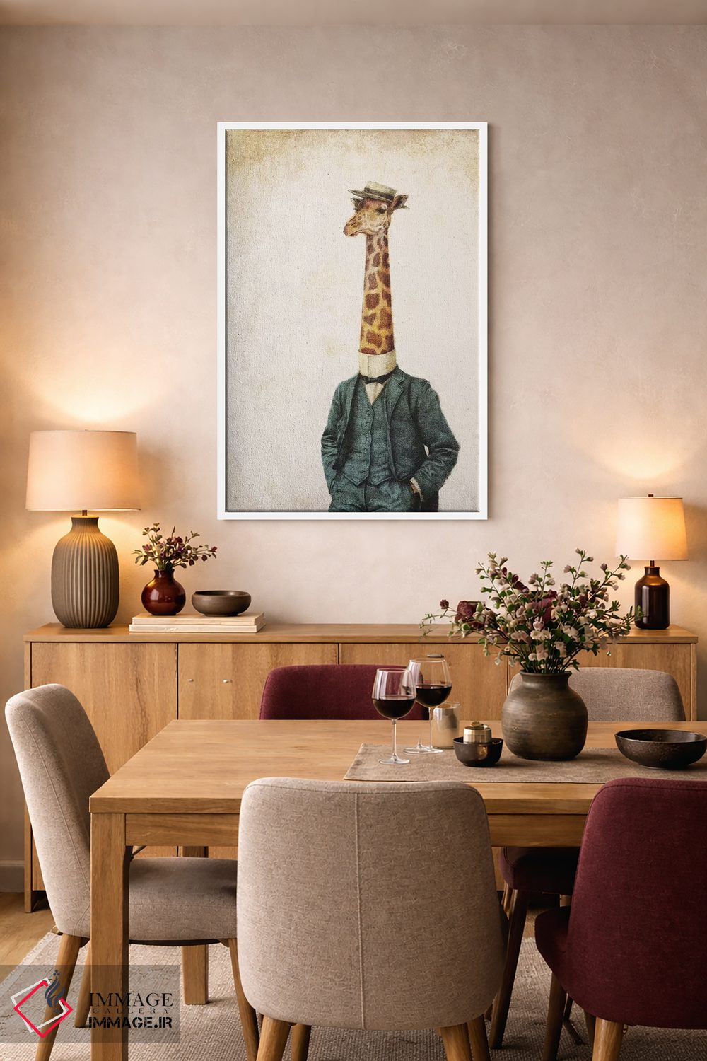 براساس پالت گرم اثر، قاب بلوط روشن (چوبی) پیشنهاد اول است و استخوانی ملایم مکمل. برای سفارشهای پروژهای با ابعاد و قابهای اختصاصی با ایماژ در تماس باشید.