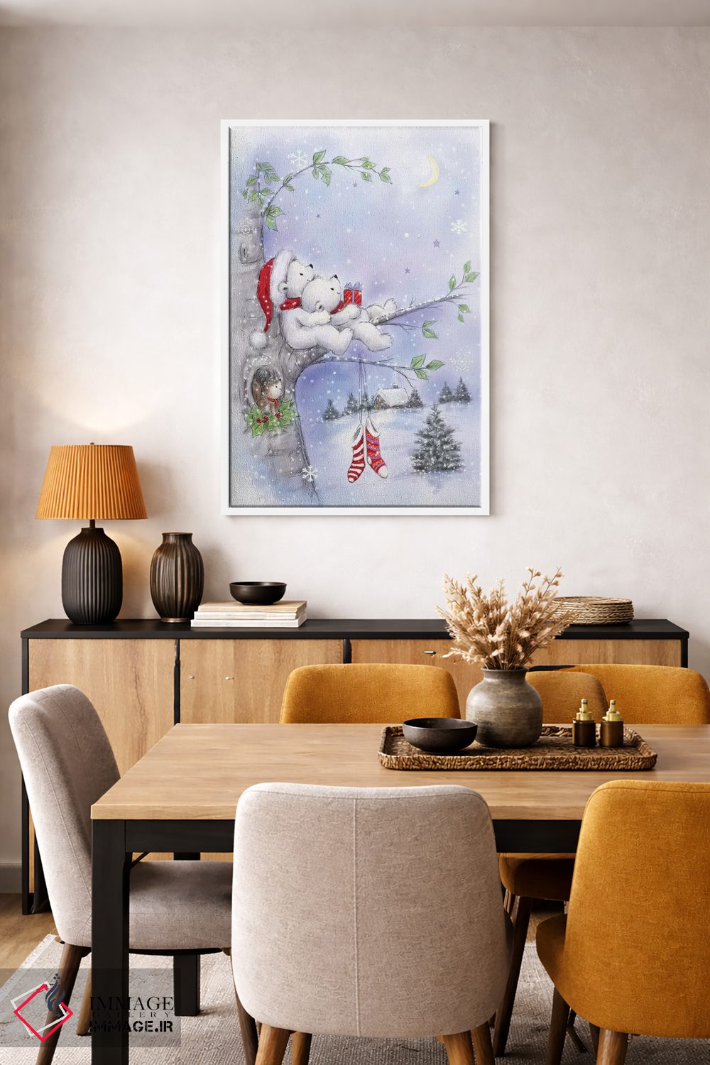 اگر میخواهید دیوار کمی سرزندگیِ محترمانه داشته باشد، «"زوج خرس روی درخت"» اثرِ «ماکیکو» در کنار رنگهای خنثی، تضاد دلچسبی میسازد، برای خانههایی با چوب و پارچههای گرم گزینهٔ مناسبیست. برای دیوار گالریوار هم گزینهٔ خوبیست.