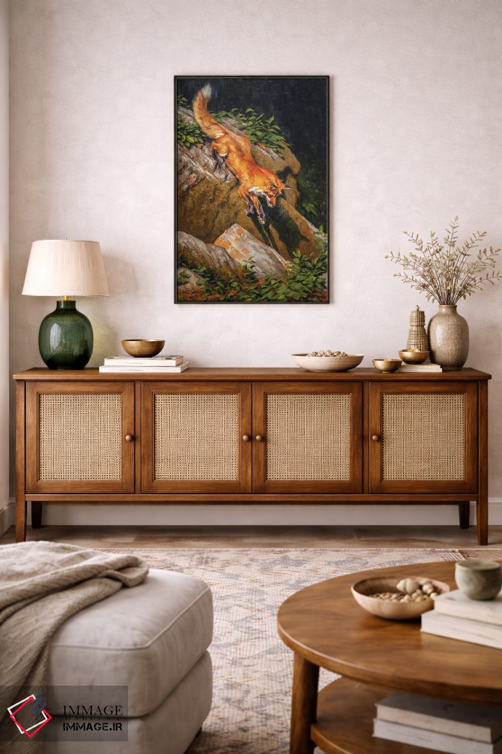 اگر به آثار حیوانات علاقه دارید، «راهزن سرخپوش» اثرِ «مارک مککِنا» گرما و شخصیت به فضا اضافه میکند، برای اتاق کودک (بدون لحن کودکانه) گزینهٔ مناسبیست. به دیوار، قصه میدهد—اما قصهای آرام و شیک.
