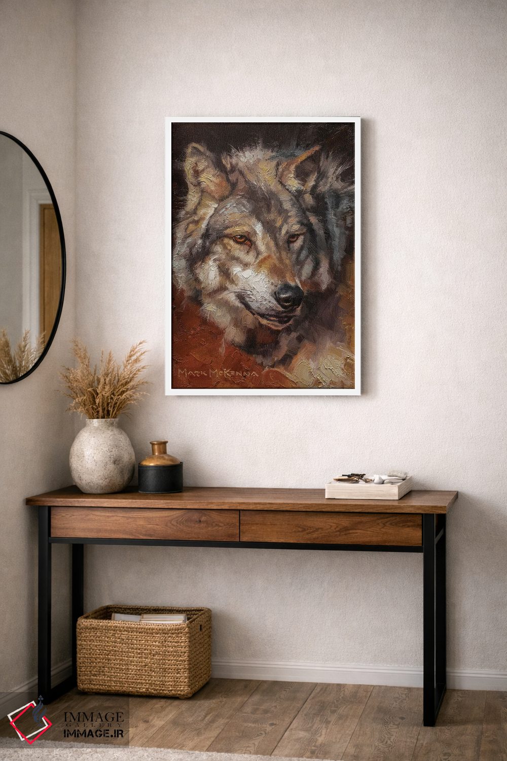 براساس پالت گرم اثر، قاب تیک گرم (چوبی) پیشنهاد اول است و مشکی مات (فریم متوسط) مکمل. برای سفارشهای پروژهای با ابعاد و قابهای اختصاصی با ایماژ در تماس باشید.