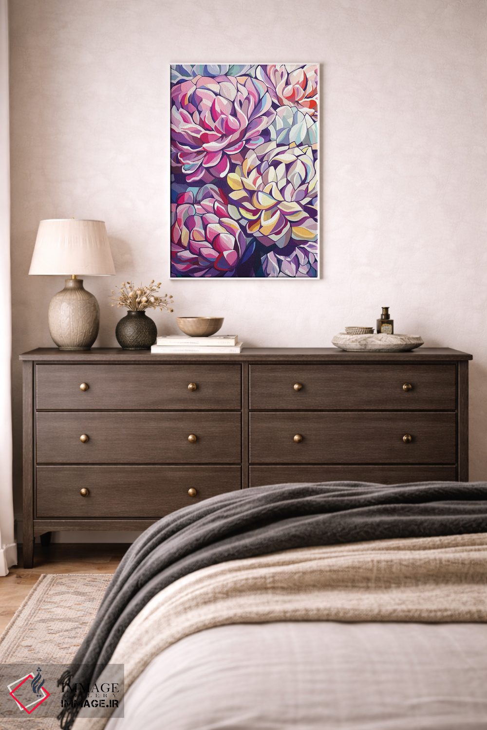 بوم گالری ایماژ نسخهی چیدماناتیوِ باکیفیت از یک اثر هنری است؛ روی کنواس سفیدِ یکدست و بدون اسید با چاپ هنری به استاندارد جیکلی (Giclée) با جوهرهای آرشیویِ حرفهای برای لایههای رنگی خواناتر؛ در گذارهای رنگی، لطافت بیشتری حس میشود. تابلو پس از آمادهسازی روی کلاف کشیده میشود و نصب آن ساده و بیدردسر است. در صورت تمایل میتوانید نسخهی قابدار را هم انتخاب کنید یا برای قاب و اندازه سفارشی با ما در تماس باشید.