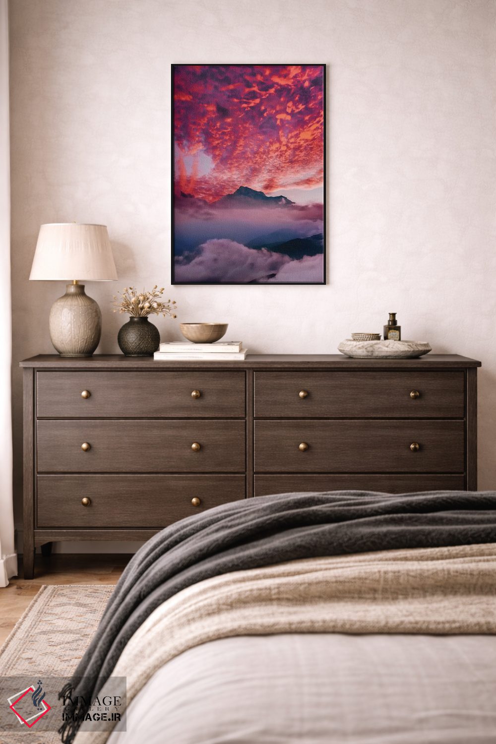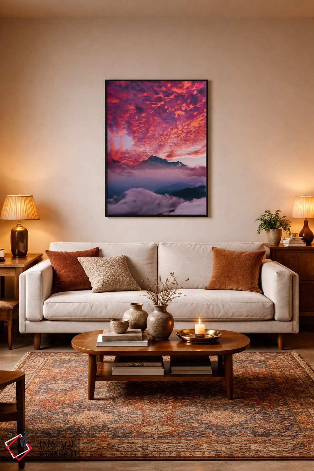 «"غروب قفقاز"» اثرِ «هوبوپیبا (هنرمند دیجیتال)» با نگاه عکاسانه به این اثر، حسِ حضور در فضا را زنده میکند؛ انتخابی مطمئن برای دیوارهای آرام و مینیمال.