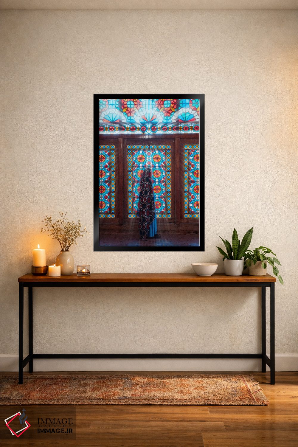 بوم گالری ایماژ نسخهی دکوراتیوِ سطحبالا از یک اثر هنری است؛ روی کنواس سفیدِ یکدست و بدون اسید با چاپ هنریِ دقیق (Giclée) برای گذارهای نرمتر و وضوح بالاتر با جوهرهای آرشیویِ حرفهای برای لایههای رنگی خواناتر، حس نهایی نزدیکتر به ارائهی گالریوار است؛ نه صرفاً یک تصویر.