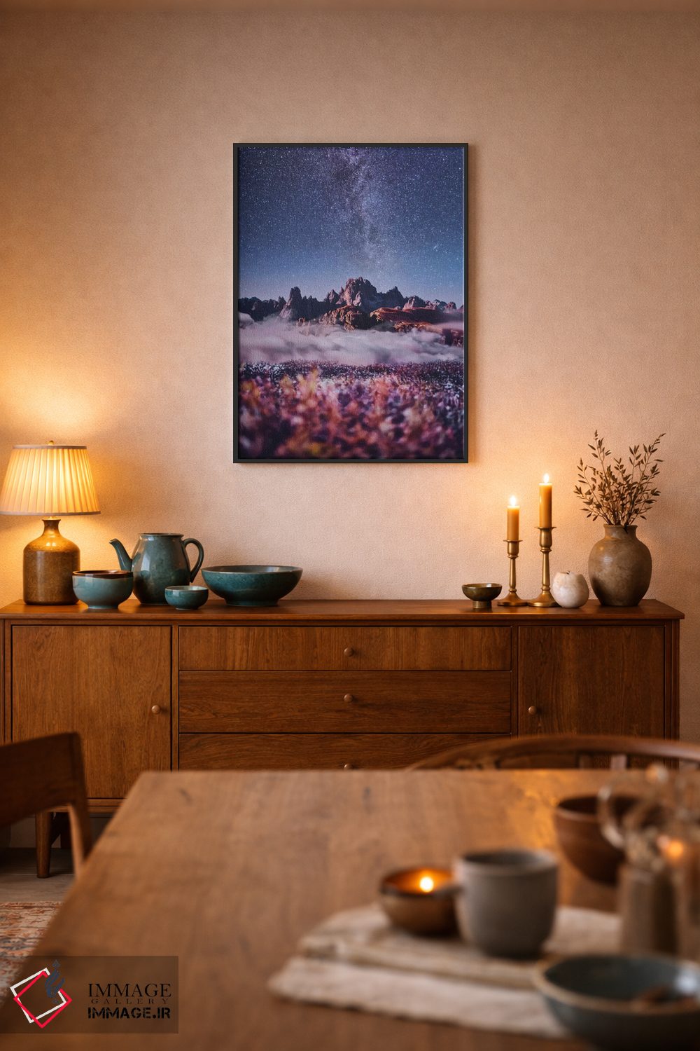 طراحی بوم گالری ایماژ بهگونهای است که اثر روی دیوار «پرداختشده» و حرفهای دیده شود—نه پرزرقوبرقِ بیپایه؛ بلکه دقیق و خوشپرداخت. بافت ظریف کنواس کمک میکند حس اثر هنری را در نگاه نزدیک نگه میدارد و برای محیطهای رسمیتر هم انتخاب مطمئنی است. در رنگهای آرشیوی Epson UltraChrome HDR، نیمسایهها را لطیفتر نگه میدارند و نتیجه را یکدستتر میکند. برای سفارش اندازه یا قاب متفاوت، تیم ایماژ راهنمایی میکند تا انتخاب نهایی هماهنگتر باشد؛ برای هدیهی هنری هم انتخاب محترمانهای است. برای پروژههای معماری داخلی، انتخاب اندازه و قاب را میتوان دقیقتر هماهنگ کرد.