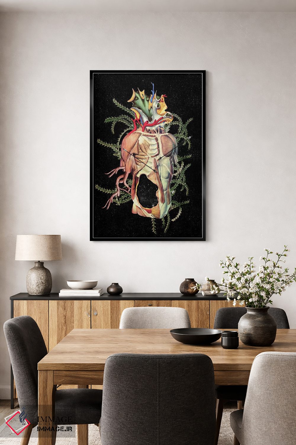 طراحی بوم گالری ایماژ بهگونهای است که اثر روی دیوار «پرداختشده» و حرفهای دیده شود—نه پرزرقوبرقِ بیپایه؛ بلکه دقیق و خوشپرداخت. بافت ظریف کنواس باعث میشود حس اثر هنری را در نگاه نزدیک نگه میدارد و نتیجه را یکدستتر میکند. قابپذیری باعث میشود قاب مناسب مرز بصری تمیزتری به اثر میدهد بهخصوص وقتی نور موضعی ملایم داشته باشید. این کیفیت برای چیدمانهای دقیقتر و پروژههای حرفهای خودش را بهتر نشان میدهد؛ در محیطهای کاری، این نظم بصری خیلی به چشم میآید.