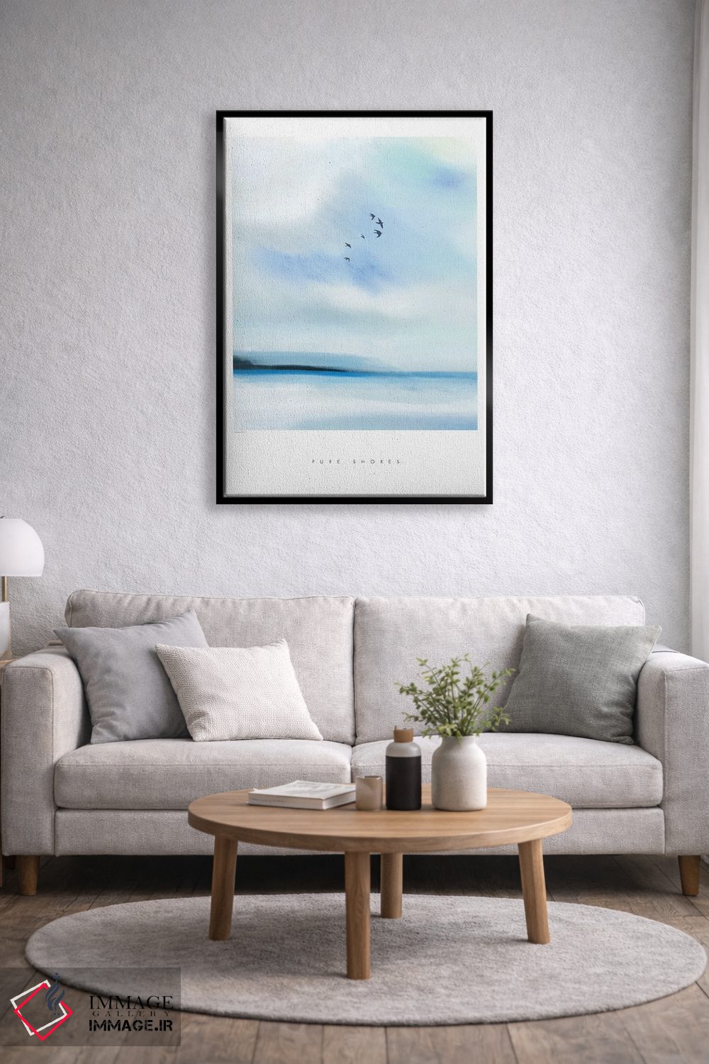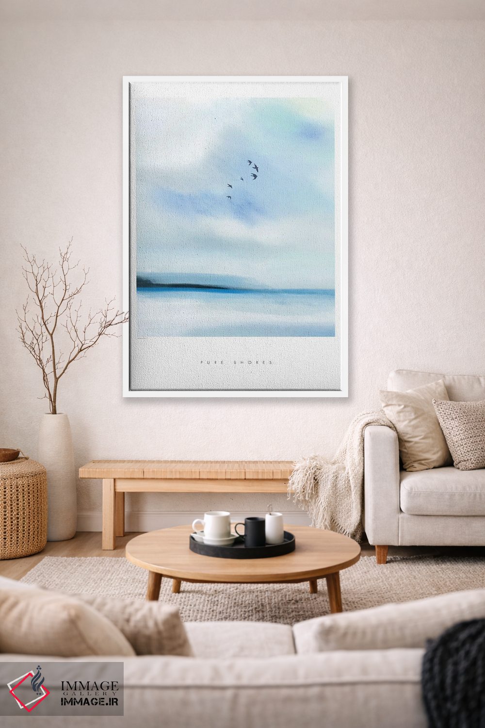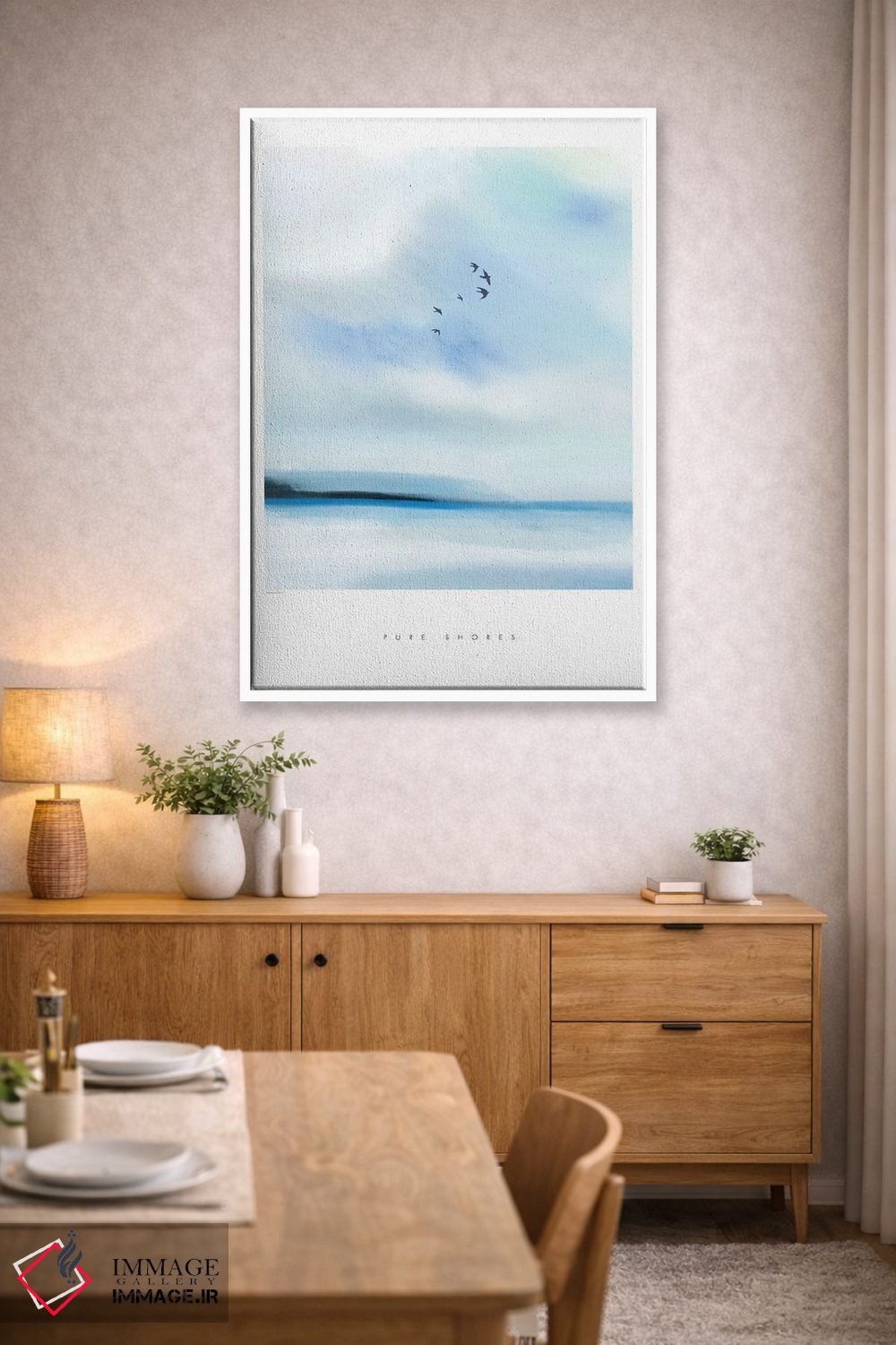 براساس پالت سرد اثر، قاب سفید مات (فریم باریک) پیشنهاد اول است و نقرهای برسخورده (متالیک) مکمل. برای سفارشهای پروژهای با ابعاد و قابهای اختصاصی با ایماژ در تماس باشید.
