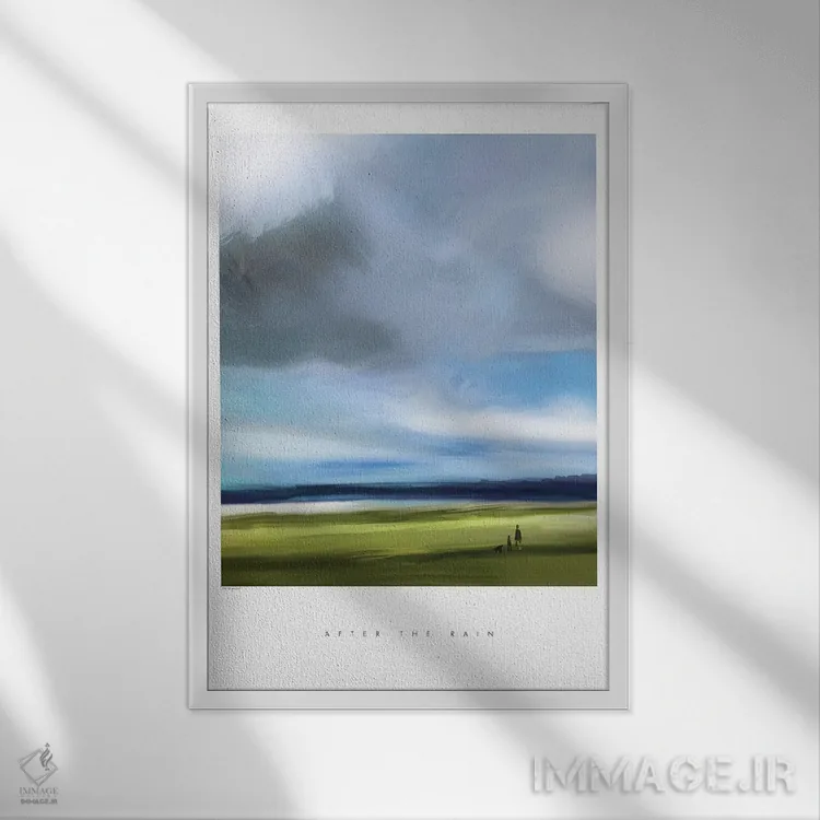 براساس پالت سرد اثر، قاب سفید مات (فریم باریک) پیشنهاد اول است و نقرهای برسخورده (متالیک) مکمل. برای سفارشهای پروژهای با ابعاد و قابهای اختصاصی با ایماژ در تماس باشید.