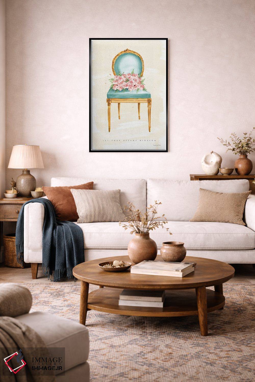 در دکورهای مدرن، صورتی را در قابهای کوچک کناری برگردانید تا نگاه به سمت اثر هدایت شود. اغراق لازم نیست.
