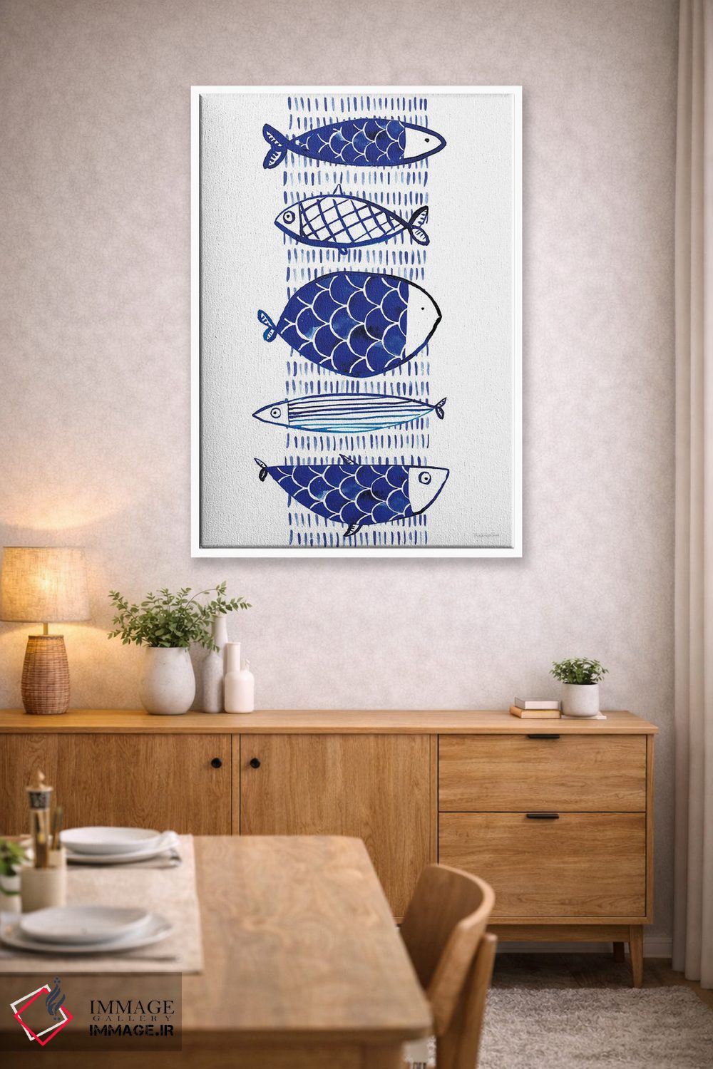 «"ماهی آبی I"» اثرِ «مرسدس لوپز چارّو» از آن کارهاییست که در کنار رنگهای خنثی، تضاد دلچسبی میسازد؛ برای اتاق بازی یا گوشهٔ مطالعه انتخاب خوبیست. اگر دنبال اثر دوستداشتنیِ «بیغلو» هستید، این یکی دقیق مینشیند.