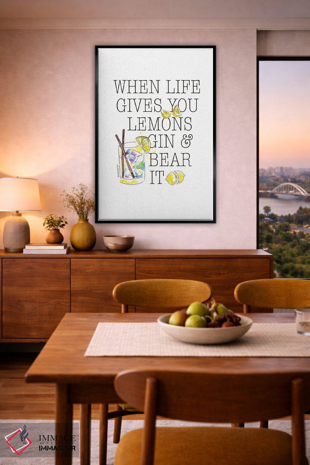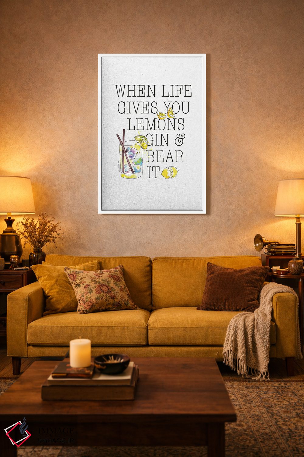 «"زندگی به تو لیمو میدهد"» اثرِ «مرسدس لوپز چارّو» یک قاب تایپوگرافیک است که ریتم فضا را منظم نگه میدارد؛ برای دیوارهای سفید و چیدمانهای ساده، گزینهی خوبی است.