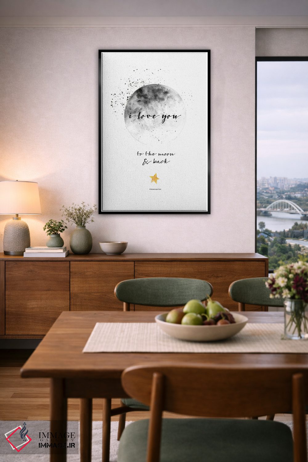 براساس پالت خنثی اثر، قاب مشکی مات (فریم باریک) پیشنهاد اول است و سفید مات (فریم باریک) مکمل. برای سفارشهای پروژهای با ابعاد و قابهای اختصاصی با ایماژ در تماس باشید.