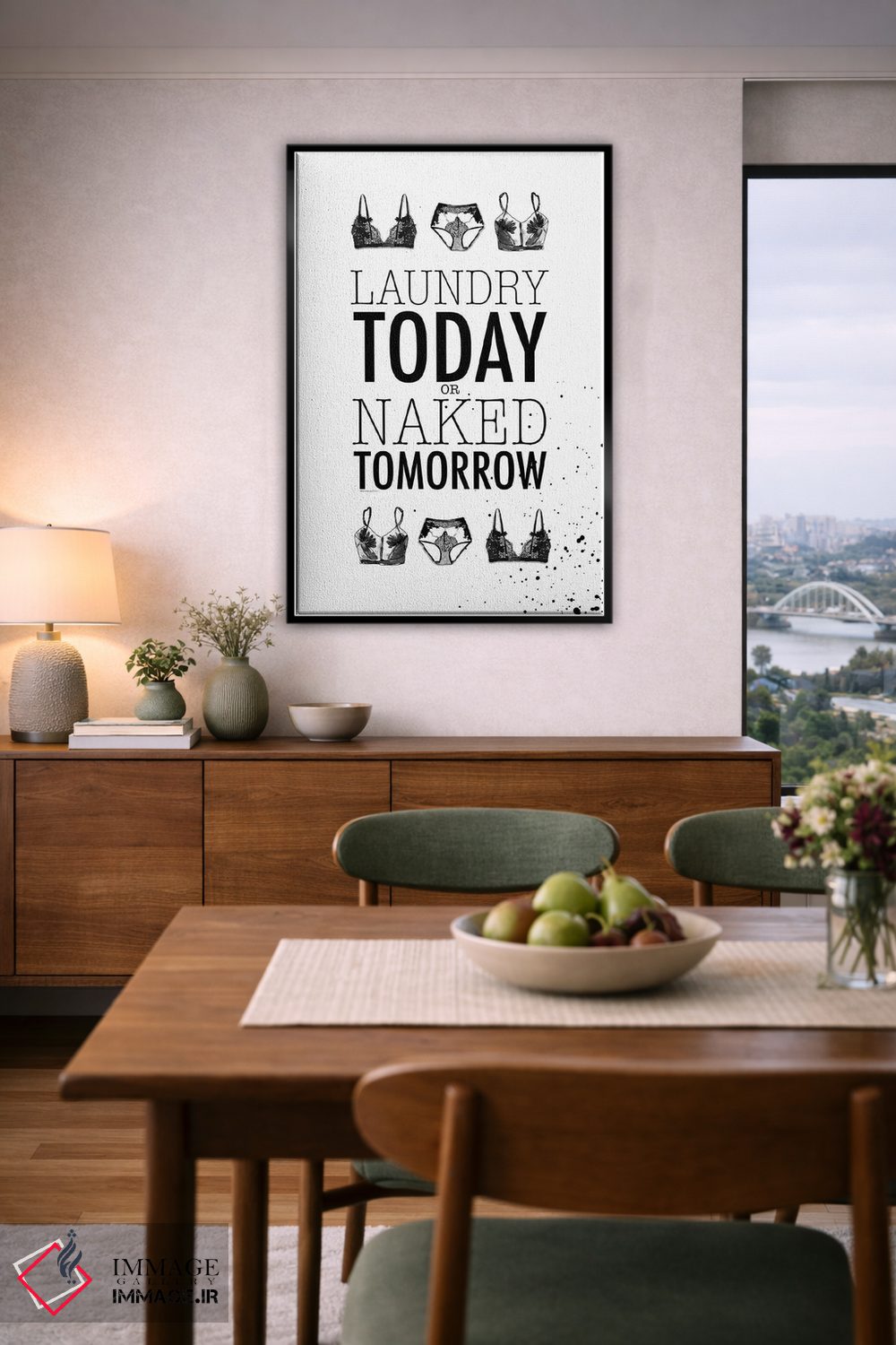 براساس پالت خنثی اثر، قاب مشکی مات (فریم باریک) پیشنهاد اول است و سفید مات (فریم باریک) مکمل. برای سفارشهای پروژهای با ابعاد و قابهای اختصاصی با ایماژ در تماس باشید.