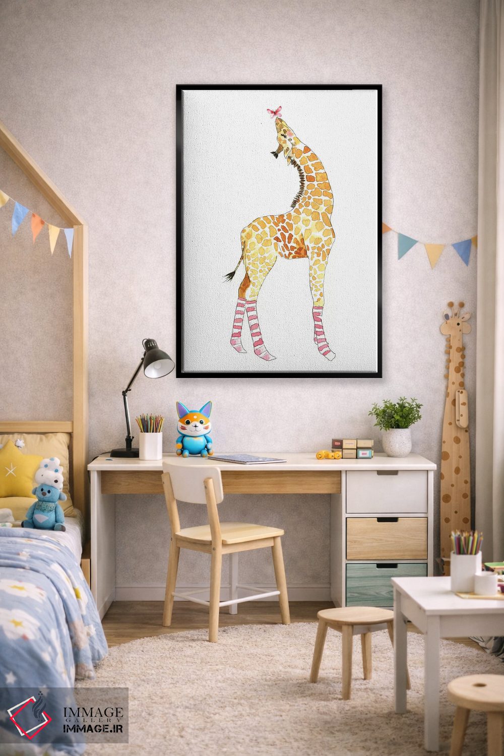 برای اتاقی که به یک عنصر دوستداشتنی نیاز دارد، «زرافه با پروانه» اثرِ «مرسدس لوپز چارّو» به دیوار، انرژیِ نرم و زنده میدهد؛ برای اتاق بازی یا گوشهٔ مطالعه انتخابی خوشسلیقه است. با قاب چوبی یا مشکی، حس مرتبتری پیدا میکند.