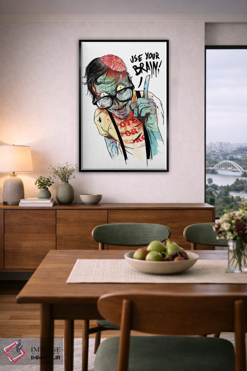 «"از مغزت استفاده کن"» اثرِ «ماتیولِه» با حس هنری، این اثر را به دیوار میآورد؛ برای فضاهای کمجزئیات و رنگهای خنثی، عالی است.