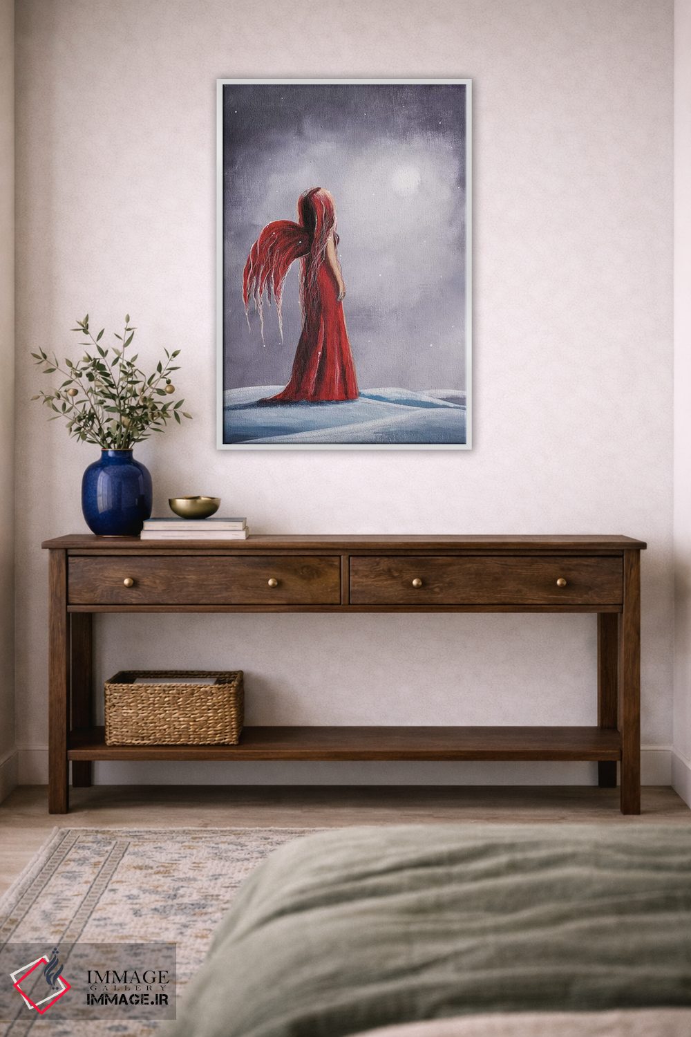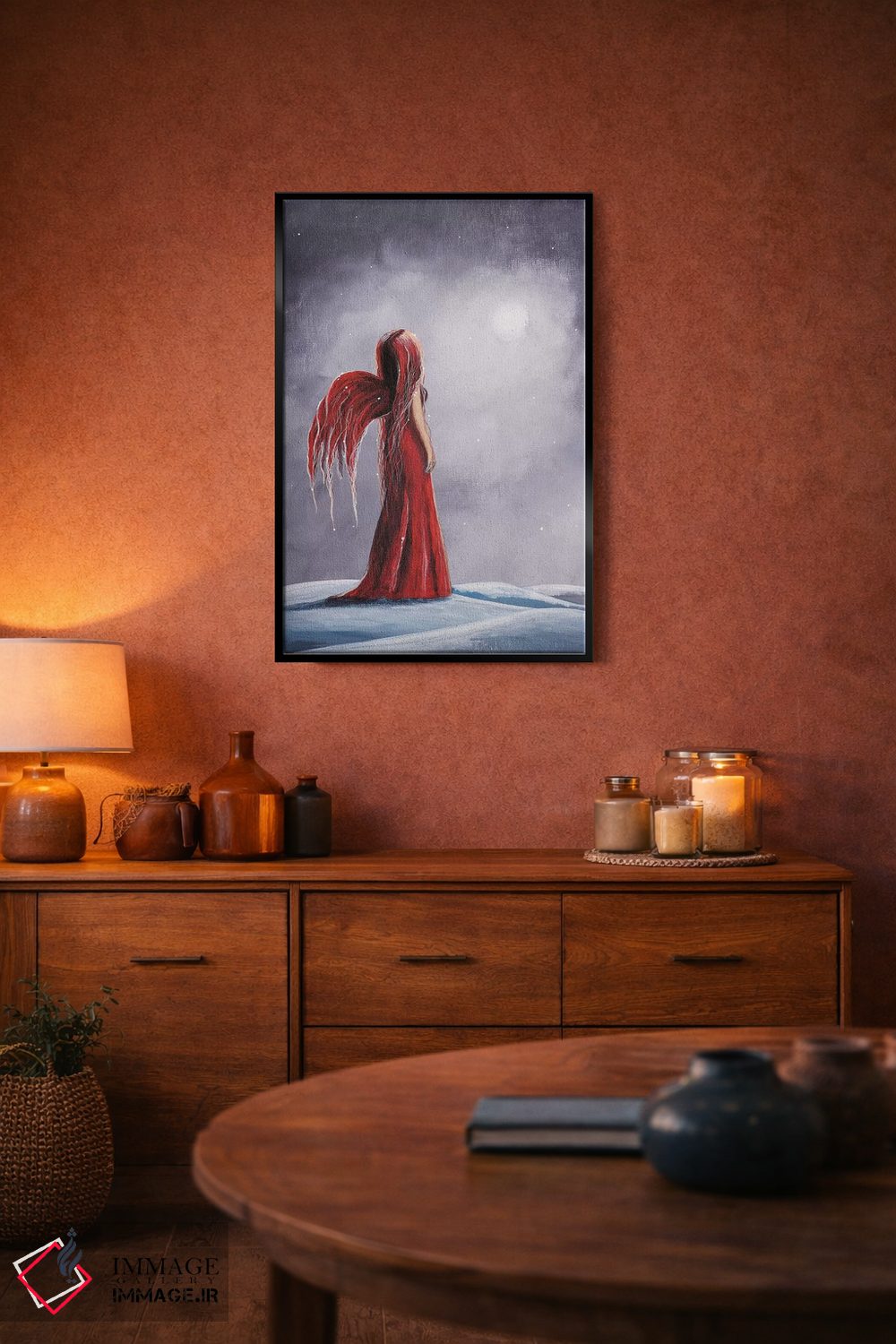 بوم گالری ایماژ نسخهی چیدماناتیوِ سطحبالا از یک اثر هنری است؛ روی کنواس بدون اسید با بافت ظریف و یکنواخت با چاپ هنری به استاندارد جیکلی (Giclée) با جوهرهای آرشیویِ حرفهای برای لایههای رنگی خواناتر؛ حس نهایی نزدیکتر به ارائهی گالریوار است؛ نه صرفاً یک تصویر.