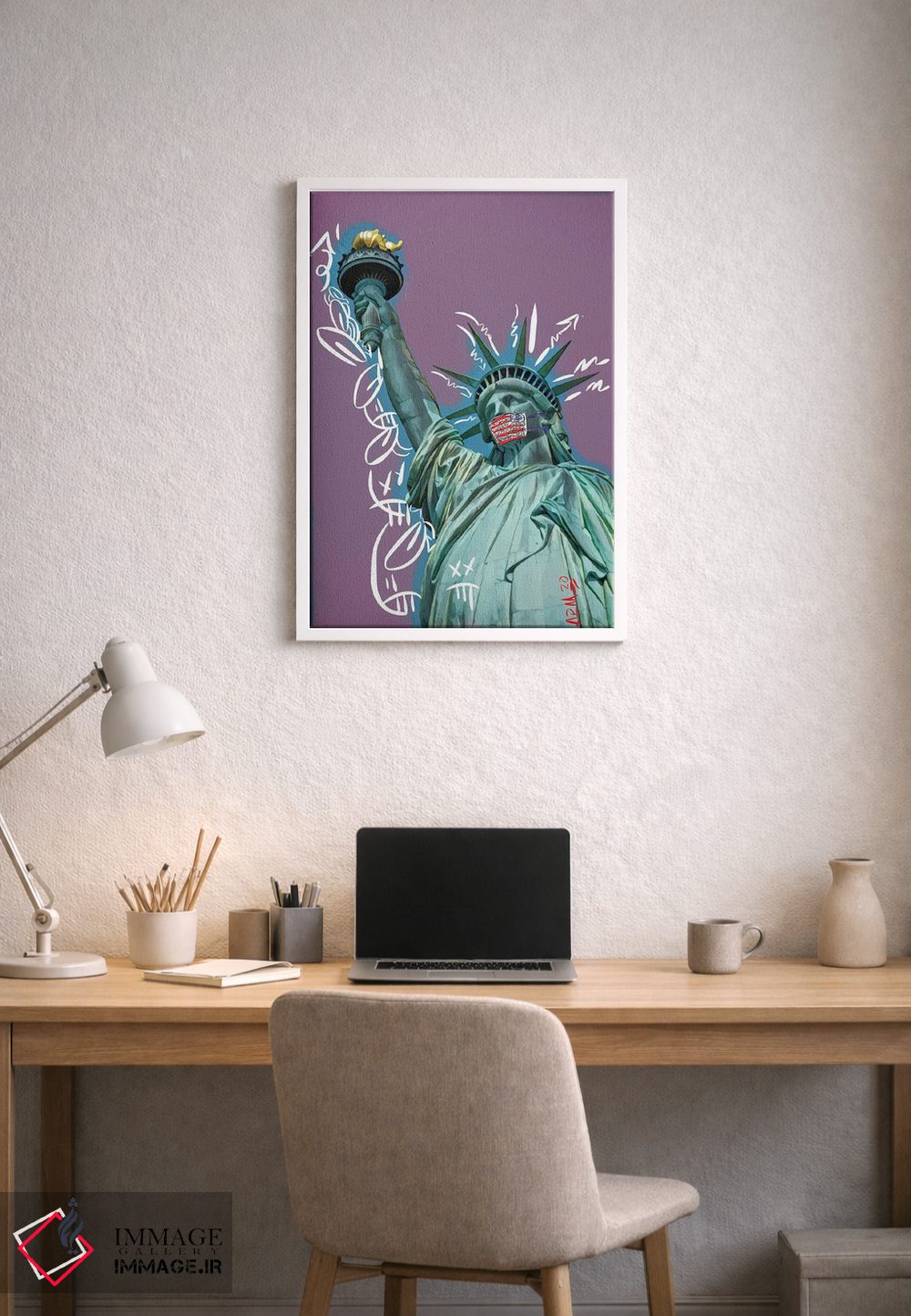 برای فضایی که میخواهید مرتبتر و حرفهایتر دیده شود، «"مواظب خودت باش!"» اثرِ «آرم آف کاسو (اشاره به پابلو پیکاسو)» ریتم فضا را منظم میکند؛ برای اتاق کار و گوشهٔ مطالعه پیشنهاد میشود. هم از دور چشمگیر است و هم از نزدیک پرداخت دارد.