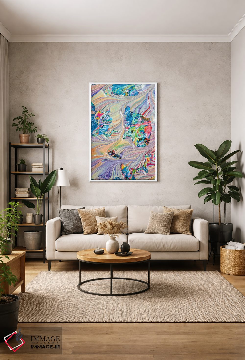 ساختار بوم گالری ایماژ طوری است که اثر روی دیوار «پرداختشده» و حرفهای دیده شود—نه پرزرقوبرقِ بیپایه؛ بلکه دقیق و خوشپرداخت. بافت ظریف کنواس کمک میکند حس اثر هنری را در نگاه نزدیک نگه میدارد و برای محیطهای رسمیتر هم انتخاب مطمئنی است. در ارائهی آماده نصب، اثر را مرتب و یکدست روی دیوار مینشاند و برای فضاهای رسمیتر هم انتخاب مطمئنی است. در نهایت، نتیجه چیزی شبیه تفاوت نسخهی معمولی با نسخهی باکیفیتتر است: نه رنگِ بیشتر، بلکه پرداخت بهتر.