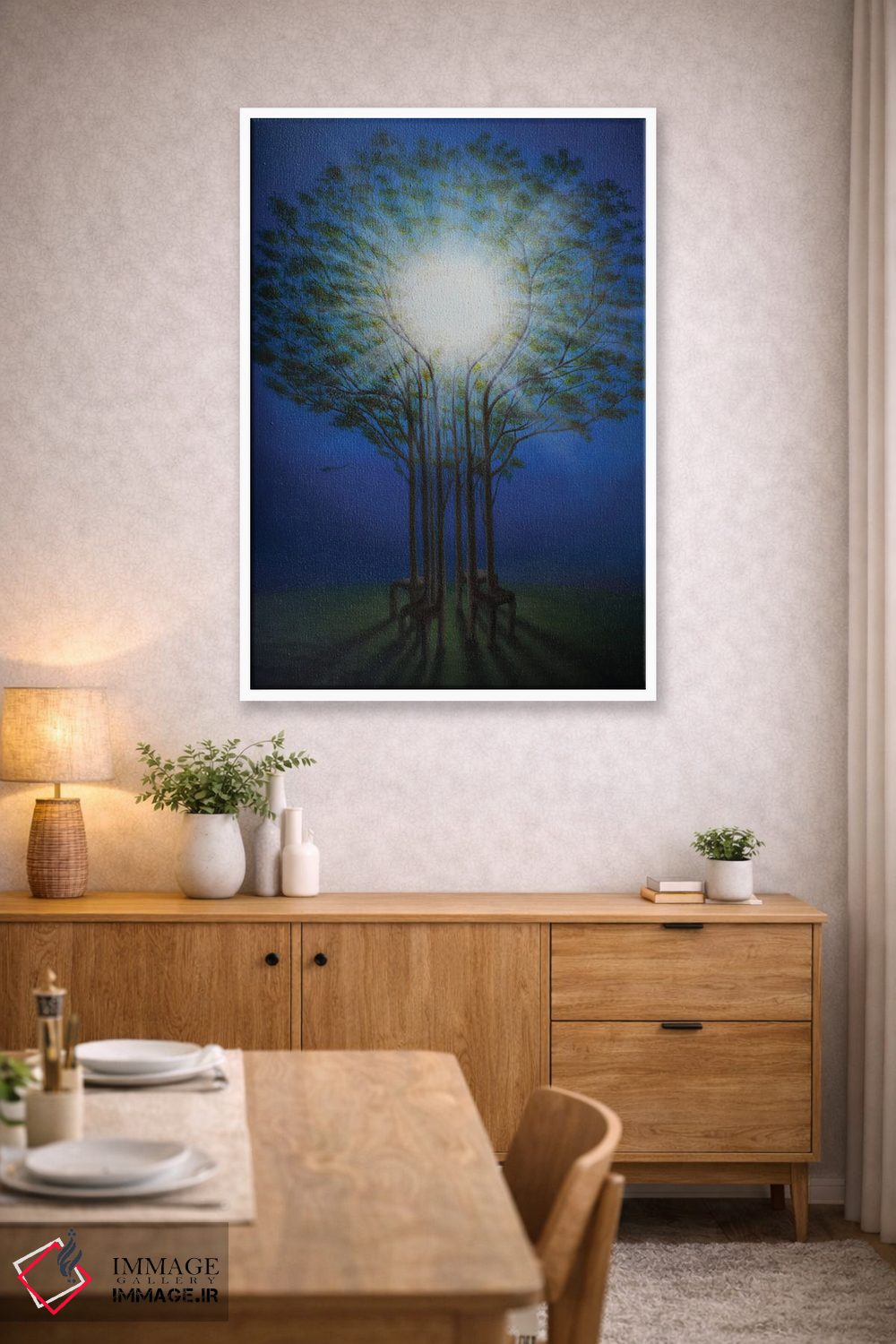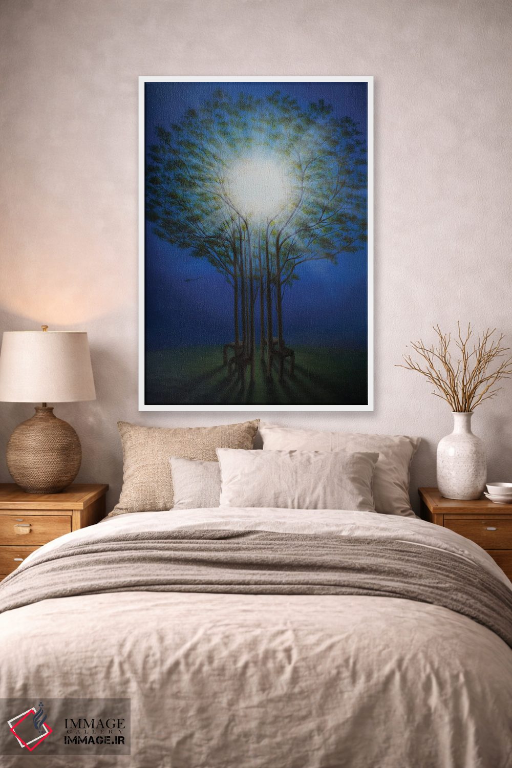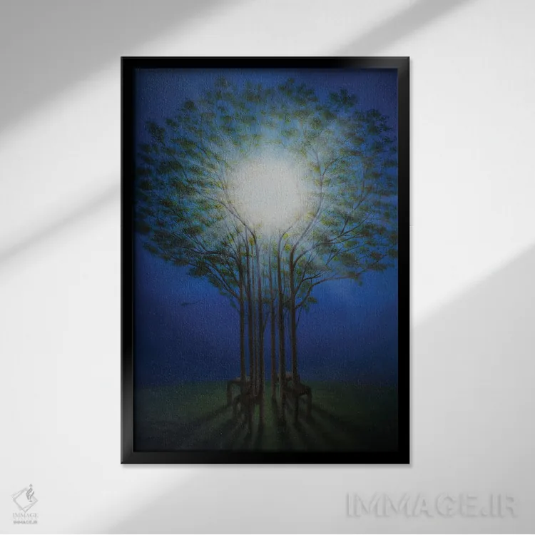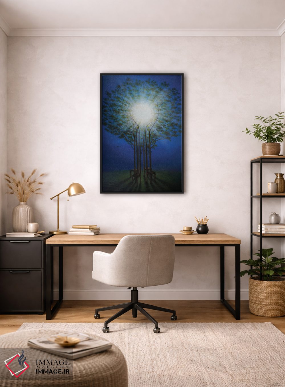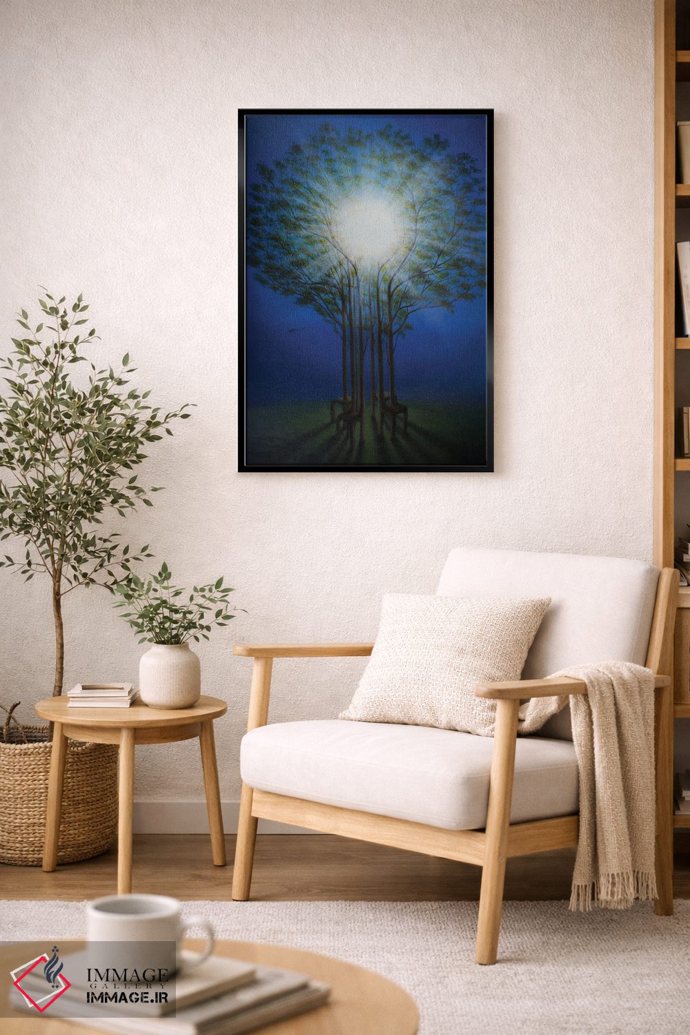 براساس پالت سرد اثر، قاب سفید مات (فریم باریک) پیشنهاد اول است و نقرهای برسخورده (متالیک) مکمل. برای سفارشهای پروژهای با ابعاد و قابهای اختصاصی با ایماژ در تماس باشید.