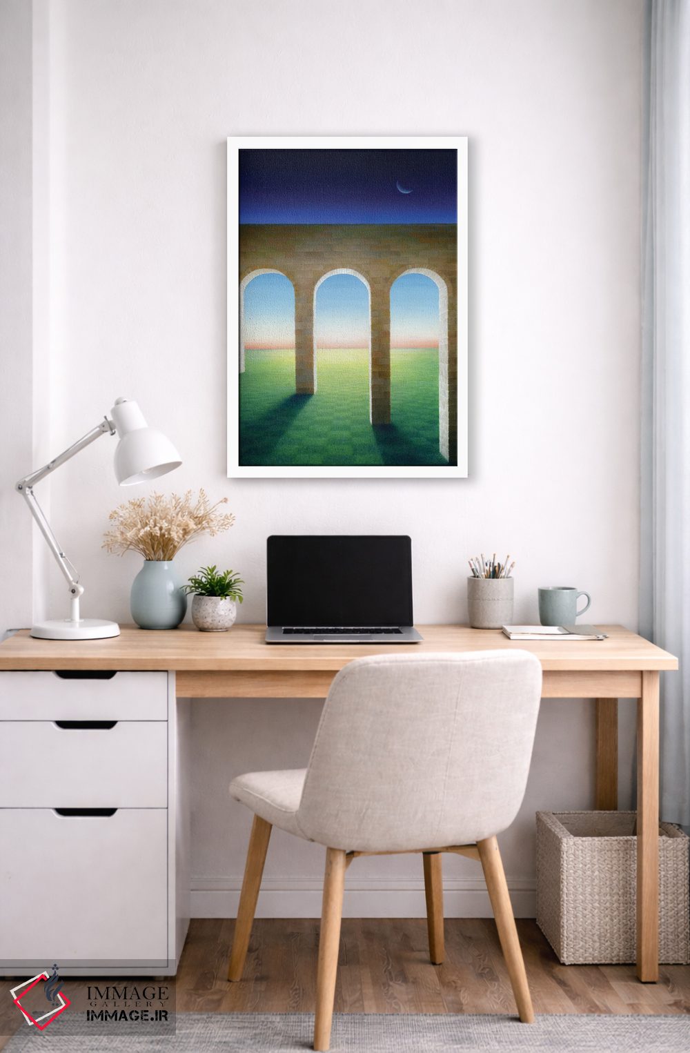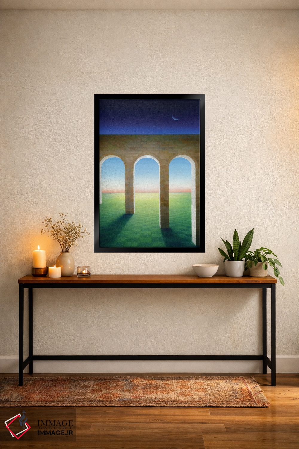 بوم گالری ایماژ طوری طراحی شده که اثر روی دیوار «پرداختشده» و حرفهای دیده شود—نه پرزرقوبرقِ بیپایه؛ بلکه دقیق و خوشپرداخت. بافت ظریف کنواس کمک میکند حس اثر هنری را در نگاه نزدیک نگه میدارد و همین «پرداخت» تفاوت را میسازد. در ارائهی آماده نصب، اثر را مرتب و یکدست روی دیوار مینشاند و در دکورهای مدرن و مینیمال خیلی خوب مینشیند. این کیفیت برای دکورهای دقیقتر و پروژههای حرفهای خودش را بهتر نشان میدهد؛ و اگر بخواهید، میتوان چیدمان را برای گالریوال هم پیشنهاد داد.