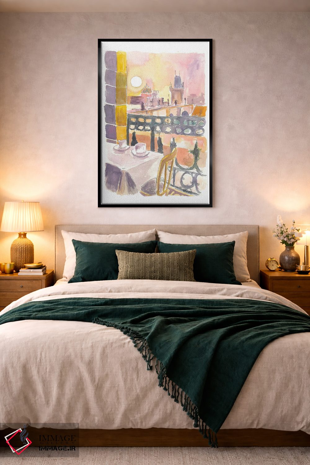 برای خانههایی که به زیباییِ آرام علاقه دارند، «"میز کافه در پراگ جمهوری چک با نمای پل کارلوف"» اثرِ «مارکوس و مارتینا بلیشنر» در کنار مبلمان، خوشنشین و هماهنگ مینشیند؛ برای محیطهای کاری و استودیوهای خلاق پیشنهاد میشود. جزئیاتش نزدیکِ کار هم ارزش نگاه دارد.