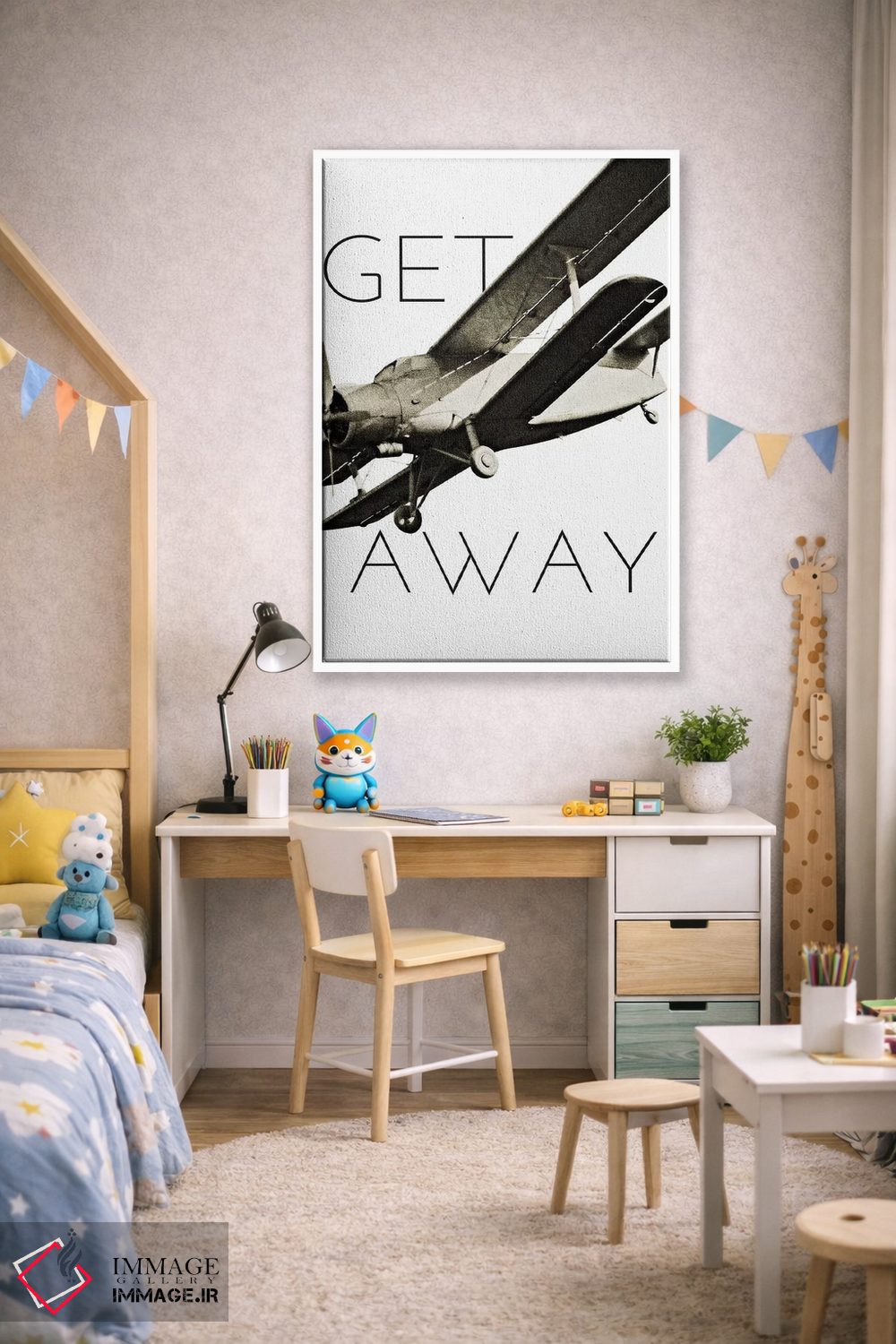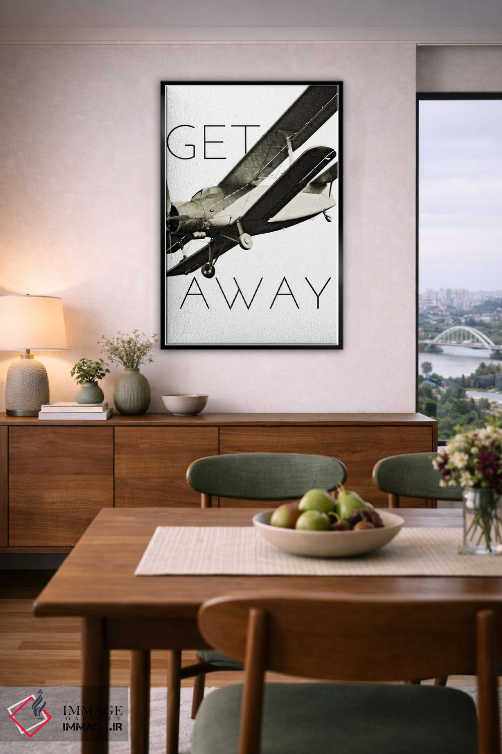 براساس پالت خنثی اثر، قاب بلوط روشن (چوبی) پیشنهاد اول است و استخوانی ملایم مکمل. برای سفارشهای پروژهای با ابعاد و قابهای اختصاصی با ایماژ در تماس باشید.