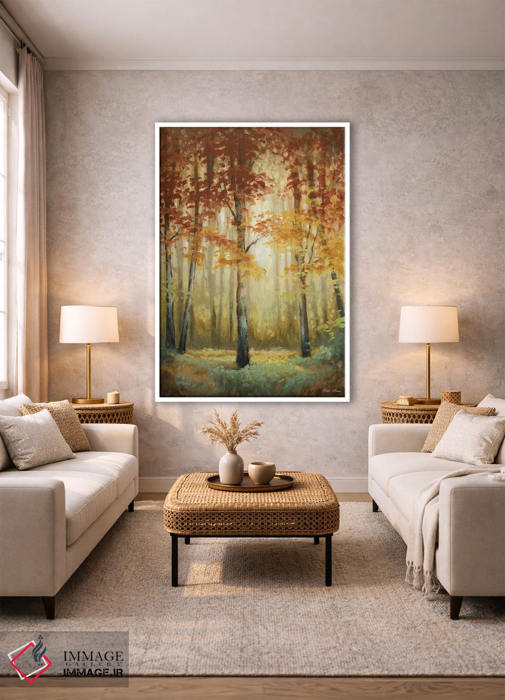 براساس پالت ترکیبی اثر، قاب تیک گرم (چوبی) پیشنهاد اول است و مشکی مات (فریم متوسط) مکمل. برای سفارشهای پروژهای با ابعاد و قابهای اختصاصی با ایماژ در تماس باشید.