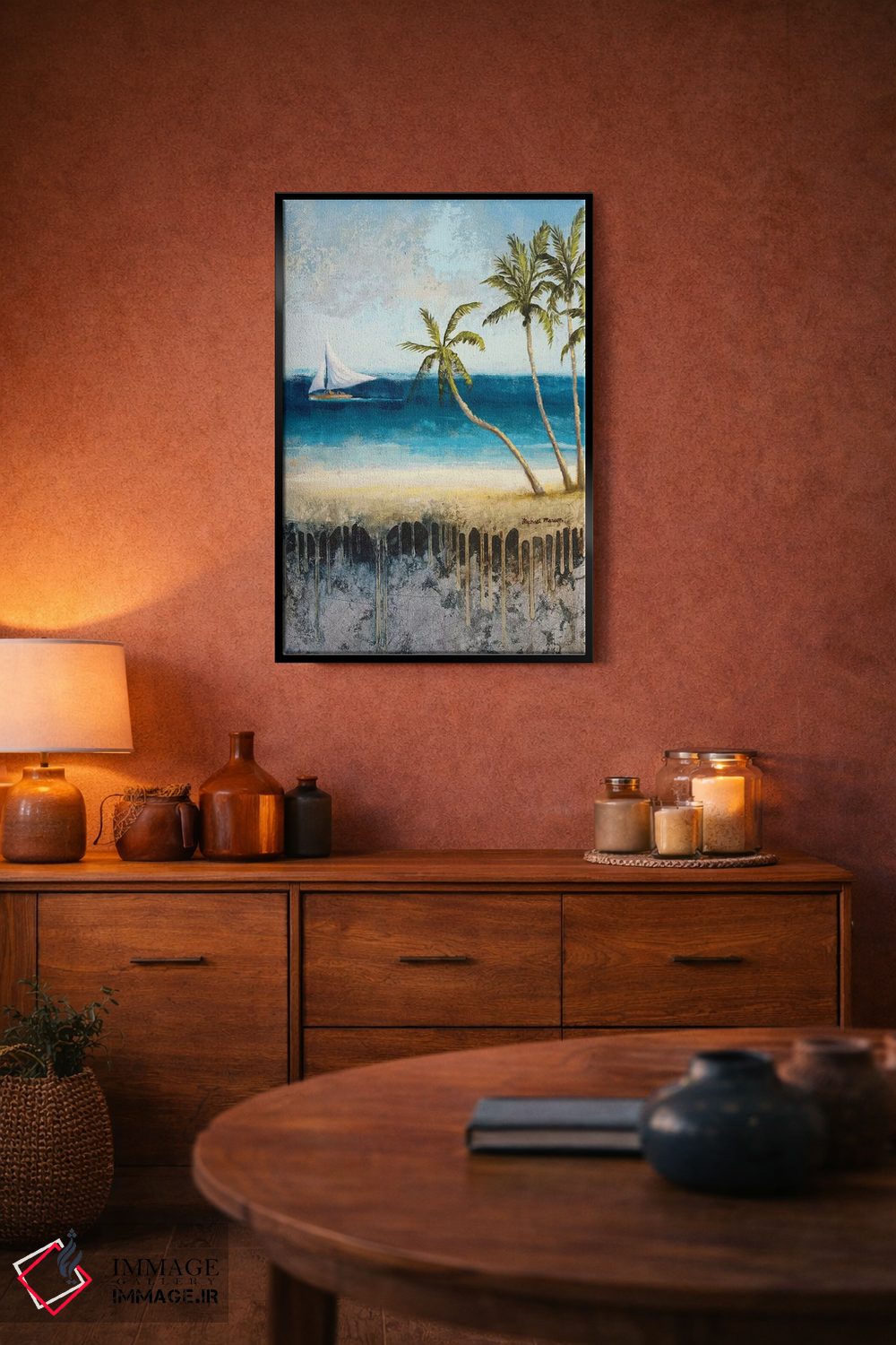 براساس پالت ترکیبی اثر، قاب بلوط روشن (چوبی) پیشنهاد اول است و استخوانی ملایم مکمل. برای سفارشهای پروژهای با ابعاد و قابهای اختصاصی با ایماژ در تماس باشید.