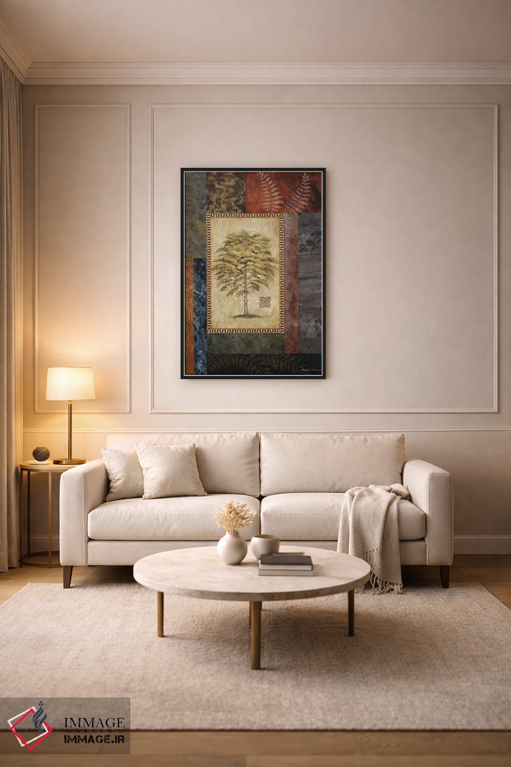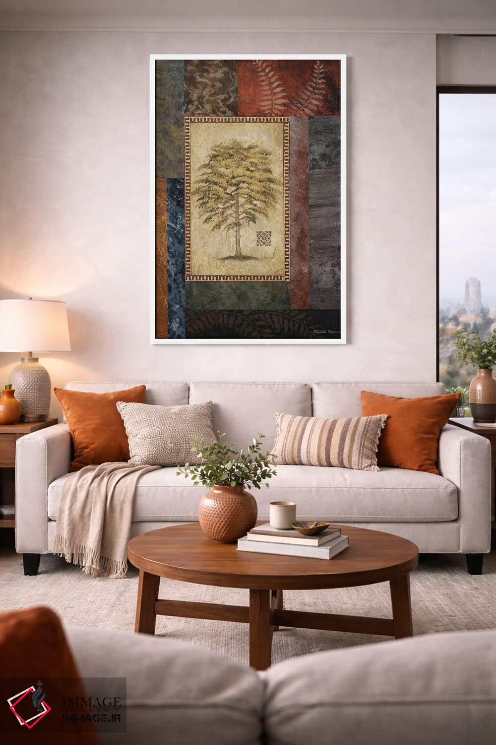 براساس پالت گرم اثر، قاب تیک گرم (چوبی) پیشنهاد اول است و مشکی مات (فریم متوسط) مکمل. برای سفارشهای پروژهای با ابعاد و قابهای اختصاصی با ایماژ در تماس باشید.