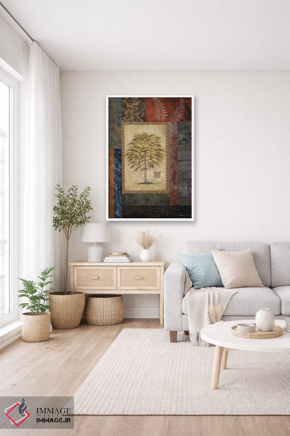 اگر دوست دارید دیوار روشنتر و آرامتر دیده شود، «"درخت اکالیپتوس II"» اثرِ «مایکل مارکون» به دیوار، روشناییِ ملایم و دلنشین میدهد، برای خانههایی با نور طبیعی گزینهٔ مناسبیست. اگر دنبال «زیباییِ بیصدا» هستید، این اثر همان حس را دارد.