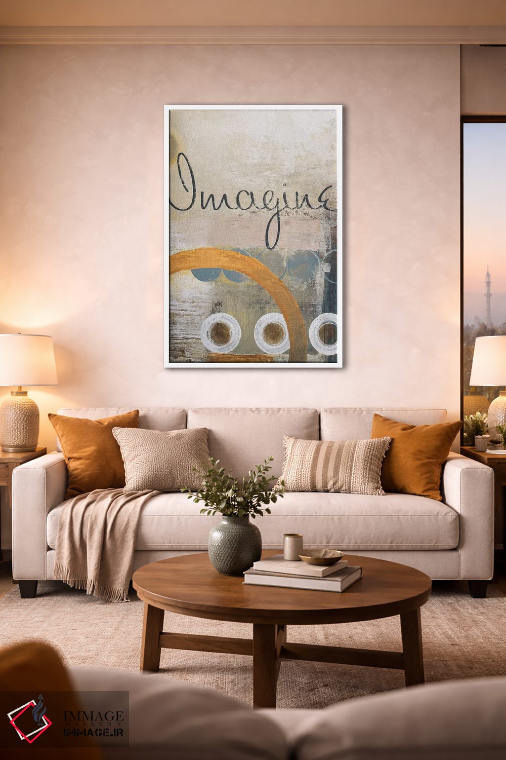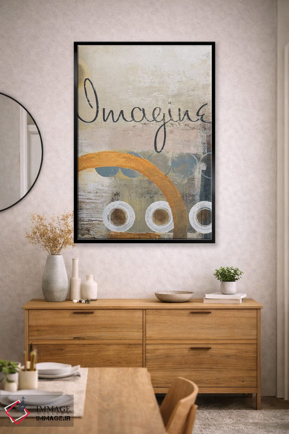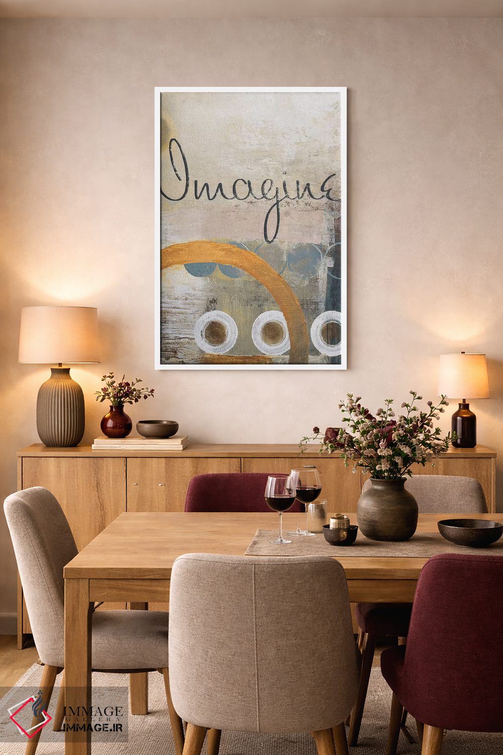 «تصور کن» اثرِ «مایکل مارکون» با حالوهوای دکور معاصر و موضوعِ این اثر، برای نشیمنهای امروزی و چیدمانهای ساده انتخابی دقیق است.
