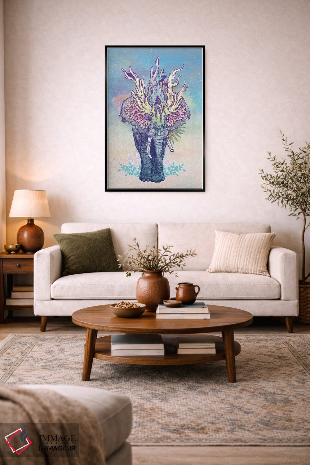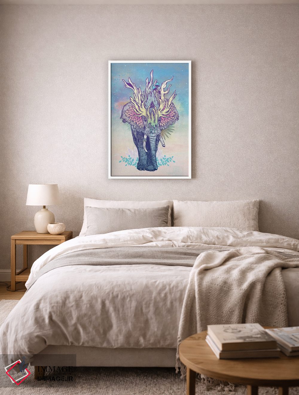 «فیل روحانی» اثرِ «مت میلر» میتواند بافت و جزئیات را طوری نشان بدهد که نگاه میماند؛ برای اتاق کودک (بدون لحن کودکانه) پیشنهاد میشود. حسش صمیمی است، اما کیفیتش جدی و خوشپرداخت.