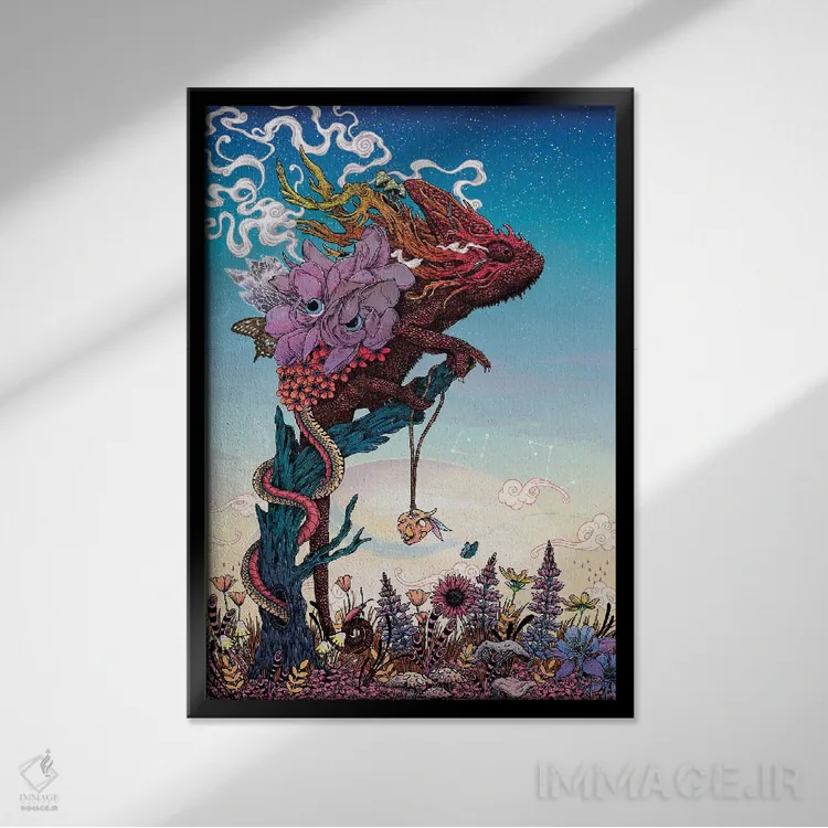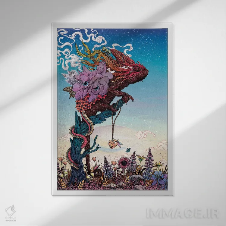 براساس پالت ترکیبی اثر، قاب تیک گرم (چوبی) پیشنهاد اول است و مشکی مات (فریم متوسط) مکمل. برای سفارشهای پروژهای با ابعاد و قابهای اختصاصی با ایماژ در تماس باشید.